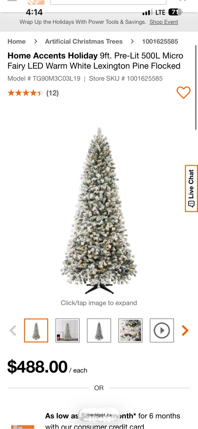 12Selling a beautiful 9ft pre-lit flocked Christmas tree from Home Accents Holiday! It features 500 micro fairy LED warm white lights and has a snowy, wintery look. The tree has 1,491 tips and comes with a folding metal stand for easy assembly. Originally priced at $488