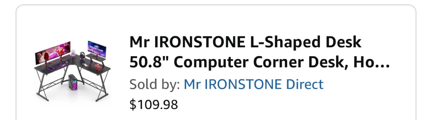 Selling a Mr IRONSTONE L-Shaped Desk! It's a 50.8" computer corner desk perfect for home or office use. The dimensions are approximately 50.8 inches in length, 29.1 inches in height, and features a convenient corner design to maximize space. Originally bought for $109.98