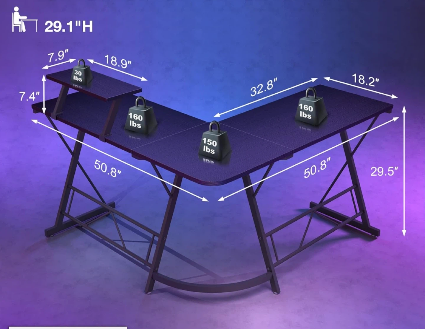 Selling a Mr IRONSTONE L-Shaped Desk! It's a 50.8" computer corner desk perfect for home or office use. The dimensions are approximately 50.8 inches in length, 29.1 inches in height, and features a convenient corner design to maximize space. Originally bought for $109.98