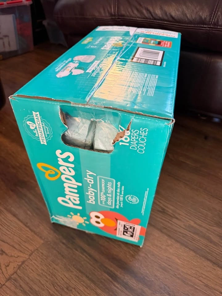 Leakproof Pampers Baby-Dry diapers size 3. Has 160 diapers. Up to 100% leakproof for days and nights. Hypoallergenic with 0% parabens, latex, and fragrance. Regular price $39.99, asking $25. Box is unopened but a bit dented. Pickup in Callaghan SW.