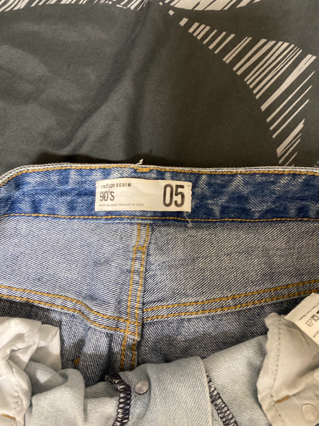 These Refuge Denim jeans are a size 5 and feature a 90's style. They're made from denim. These would be a great addition to your casual wardrobe!