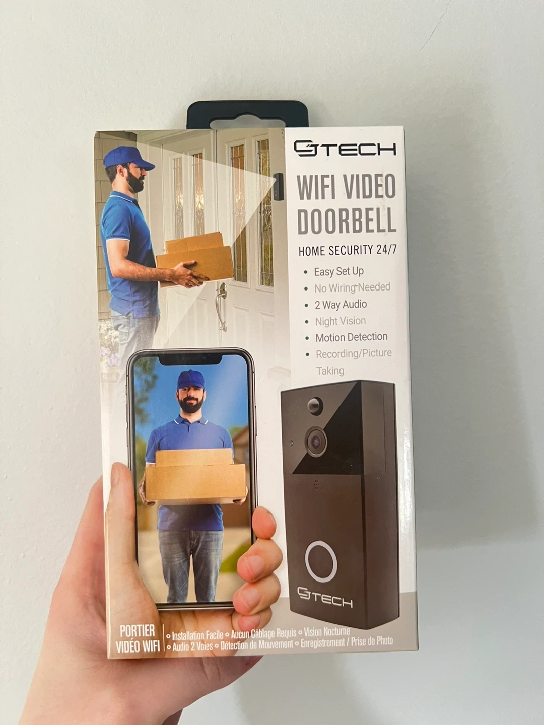 GTECH WiFi Video Doorbell for home security 24/7. It's easy to set up with no wiring needed. Features include 2-way audio, night vision, and motion detection. It's great for keeping an eye on your deliveries or visitors.