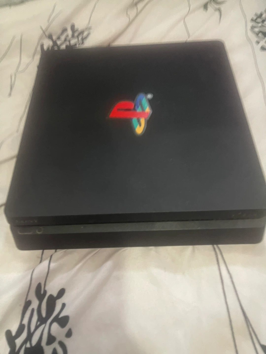 This is a black Sony PlayStation 4 Slim console. It's the 500GB model. Comes with a controller and necessary cables.