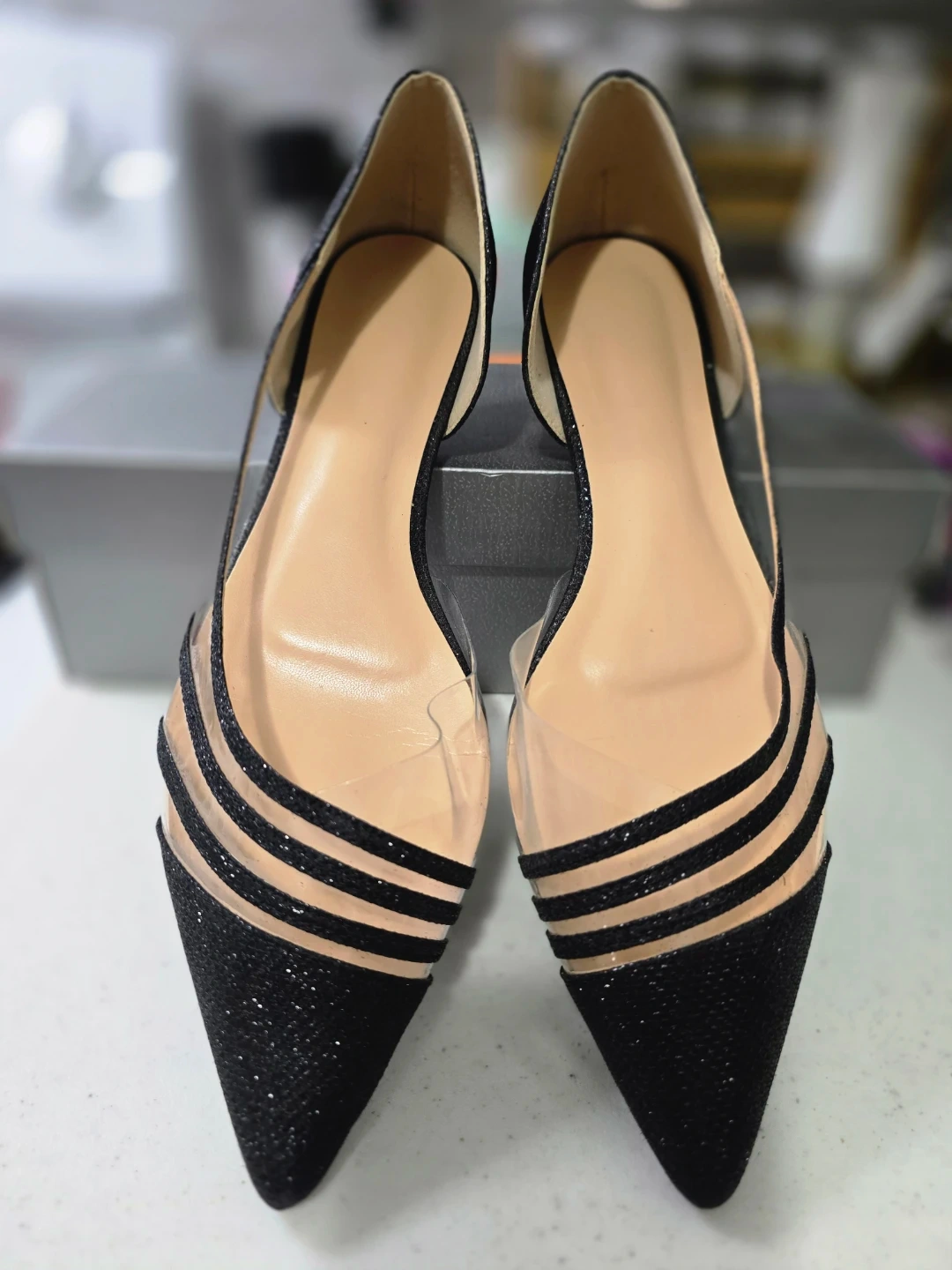 Black Glitter Pointed Toe Flats (Clear Sides) - size 11