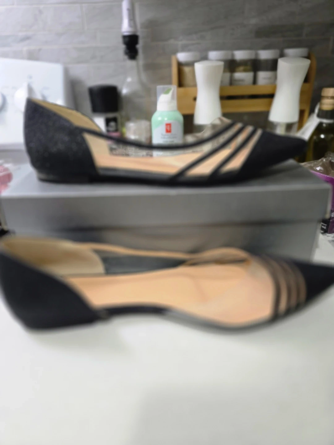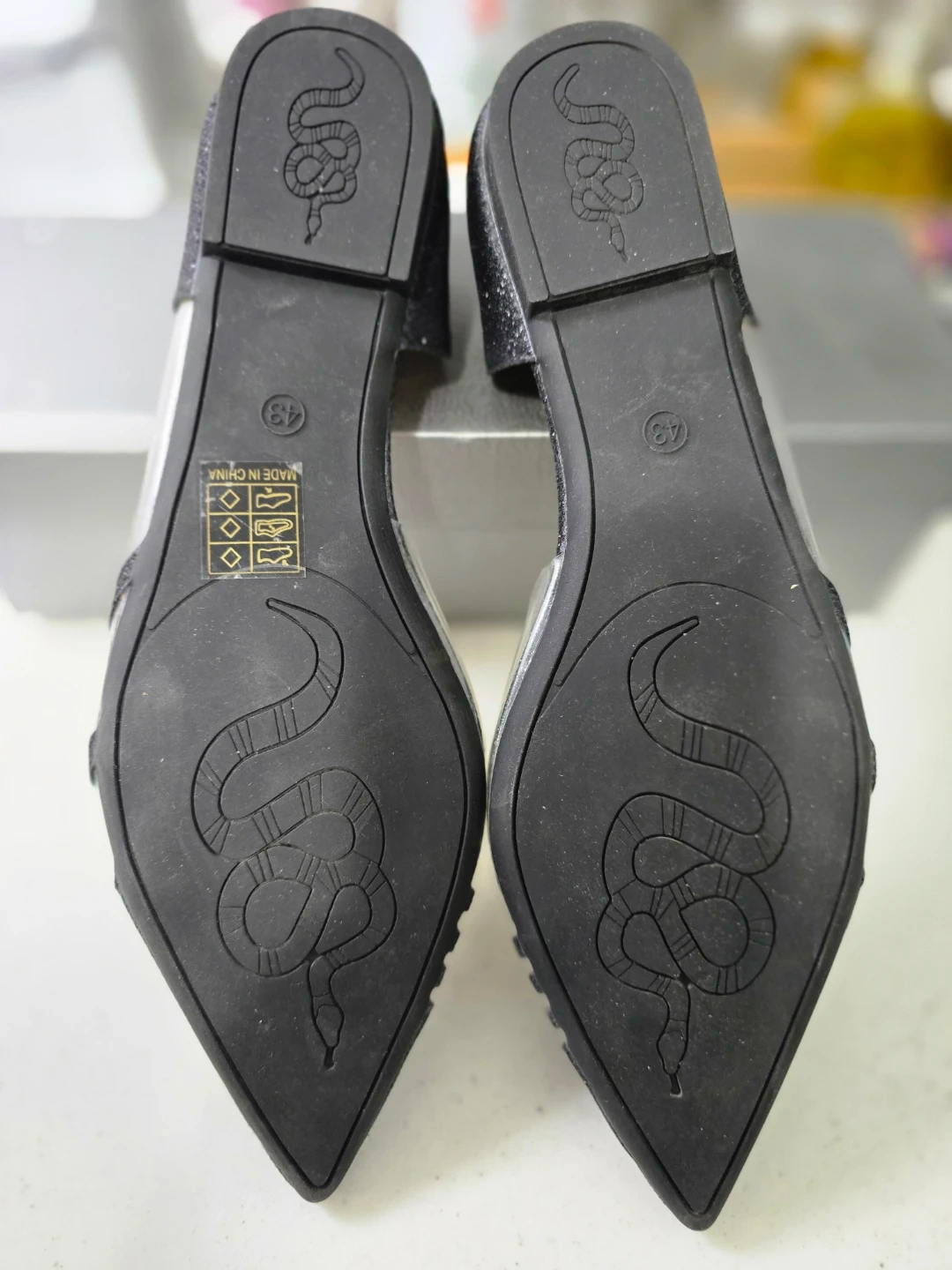 Black Glitter Pointed Toe Flats (Clear Sides) - size 11