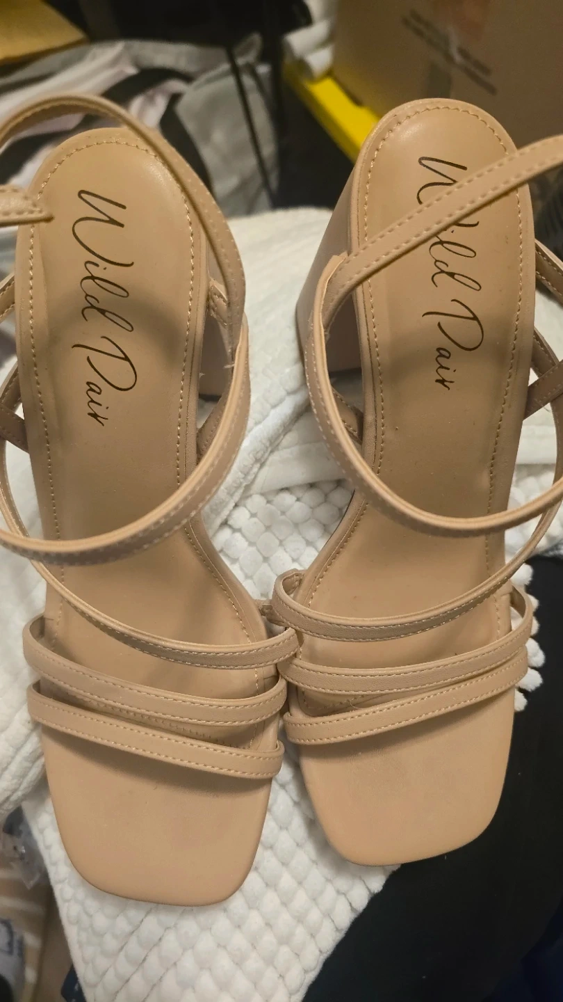 Selling a pair of Wild Pair heeled sandals in a lovely beige colour! They're a size 8. Perfect for dressing up or down