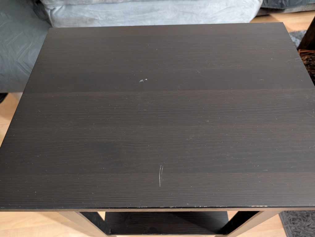 An IKEA nightstand - just one, not a set. Has one lower shelf and one drawer. The top has some slight scuffing, but this would be great for a living room end table or a nightstand for a student or someone just starting out/starting over.