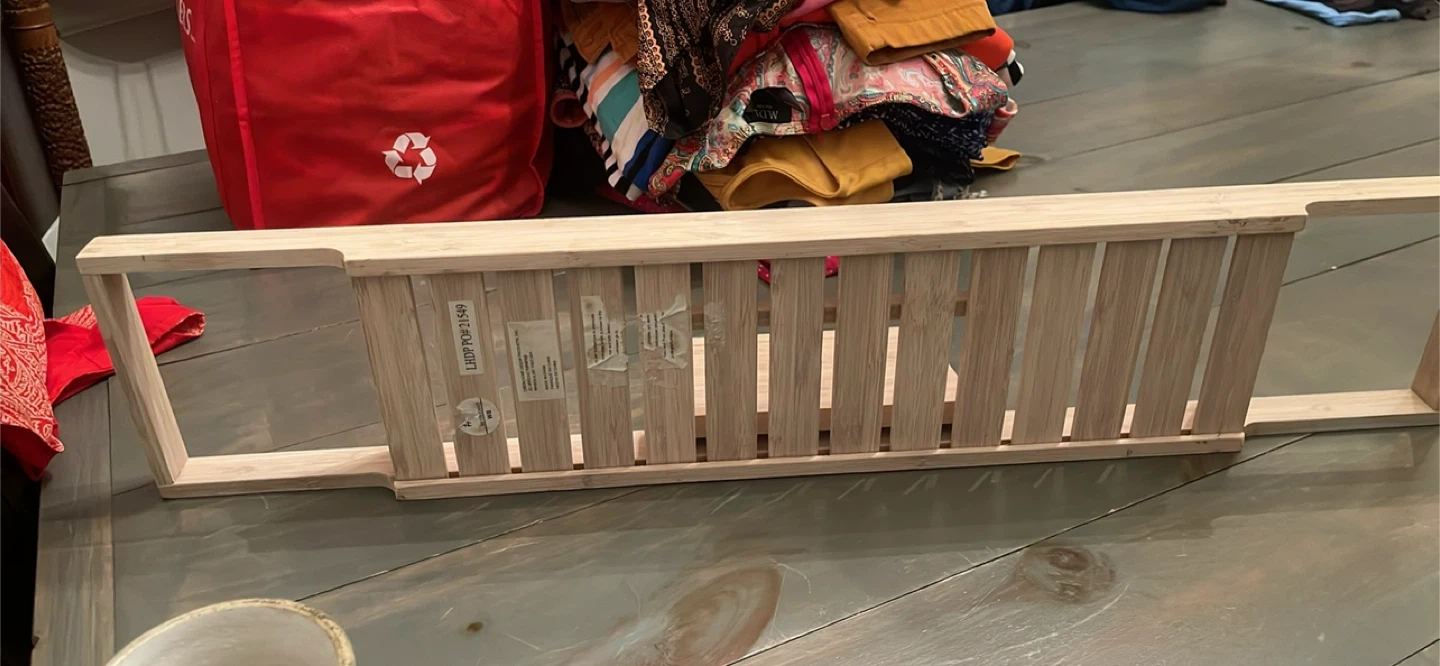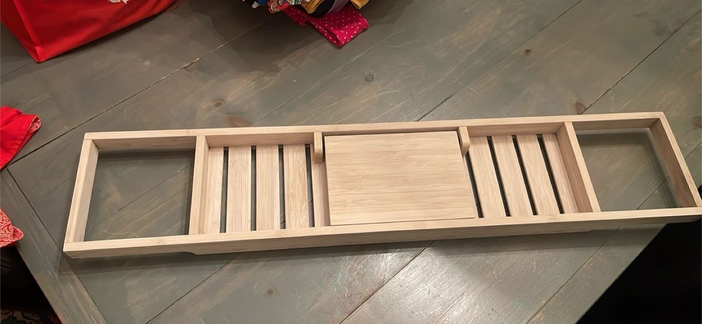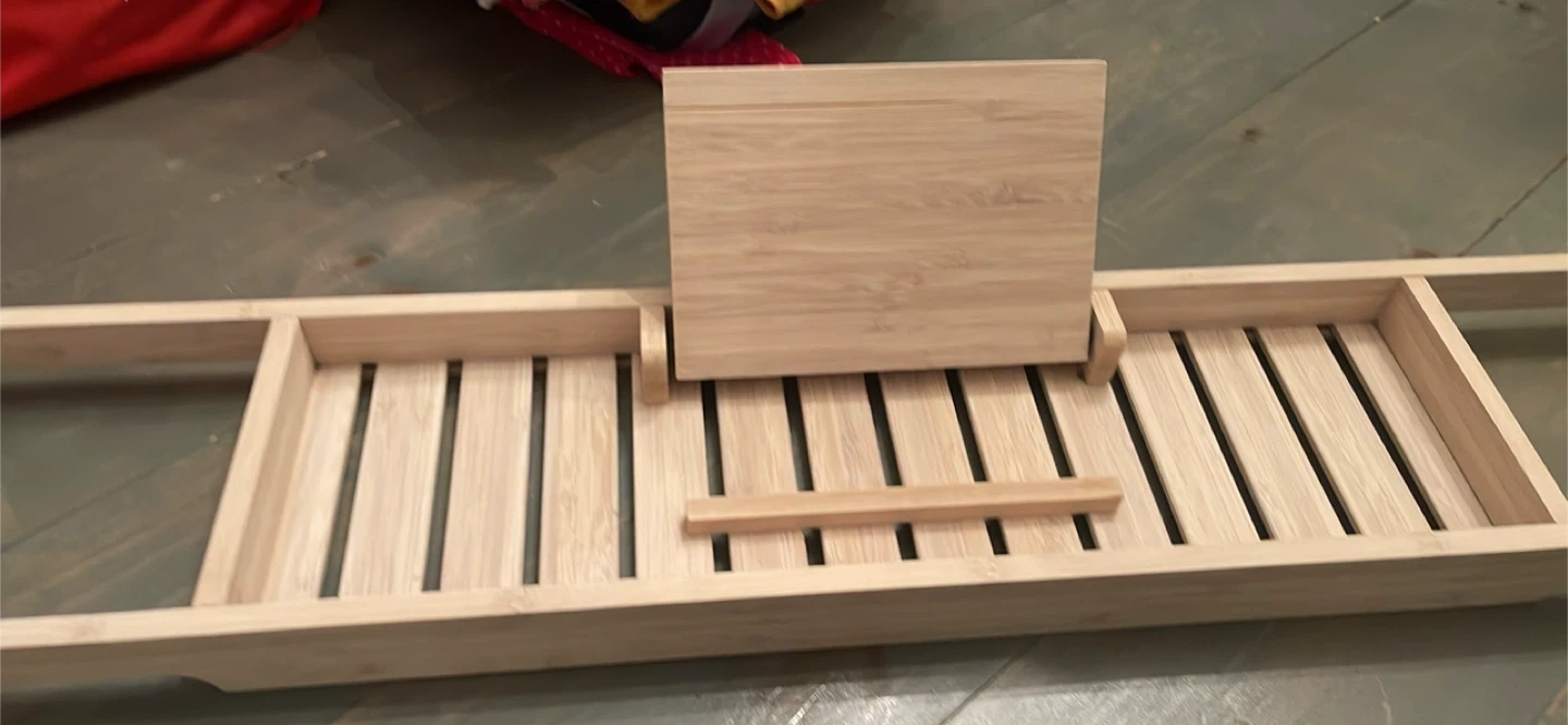 Selling a bamboo bathtub caddy tray. It's perfect for relaxing in the tub with a book or tablet. It has compartments for your bath essentials too!