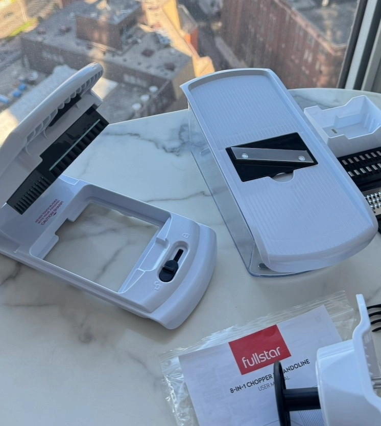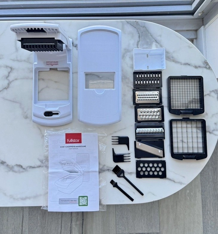 Fullstar 8-in-1 Vegetable Chopper & Mandoline Slicer in excellent condition. Purchased in October 2025 and lightly used. Selling due to moving. This popular kitchen gadget makes meal prep fast and easy — perfect for chopping vegetables, salads, and meal prep in seconds. Features: 8-in-1 chopper, slicer, dicer, and grater, Razor-sharp stainless steel blades, Large 5-cup container for catching chopped vegetables, Non-slip base for stability, Soft-grip handle for better control, Dishwasher safe, BPA-free.