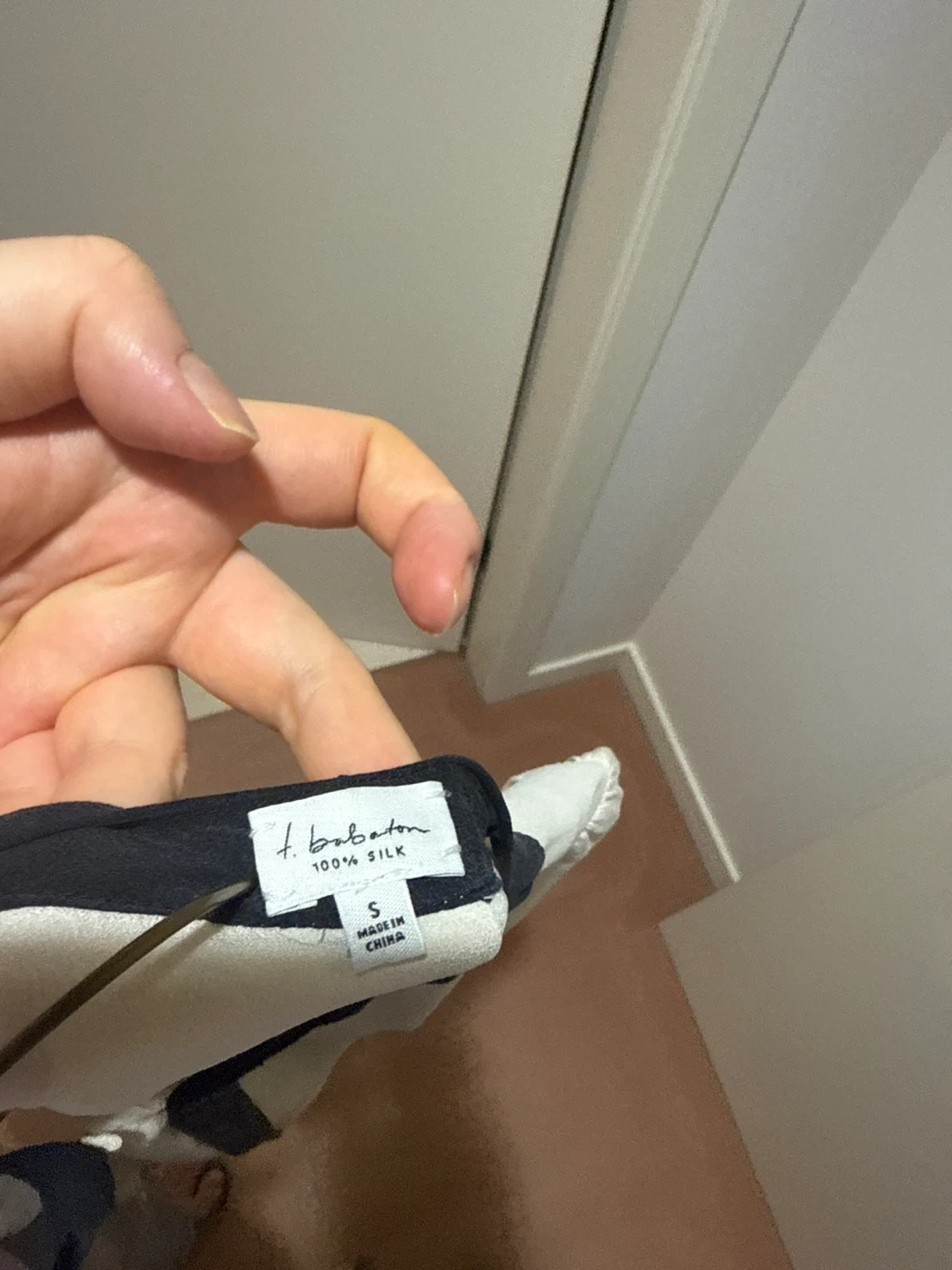 A beautiful t. babaton blouse made from 100% silk! The blouse is size small and features a lovely design with black accents which can be tied in a bow. It was dry cleaned last but it hand washes well too.