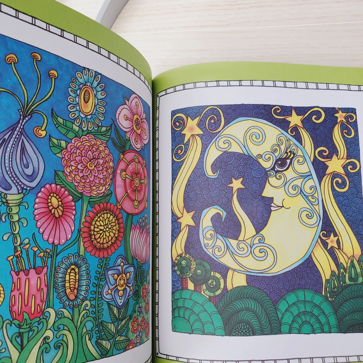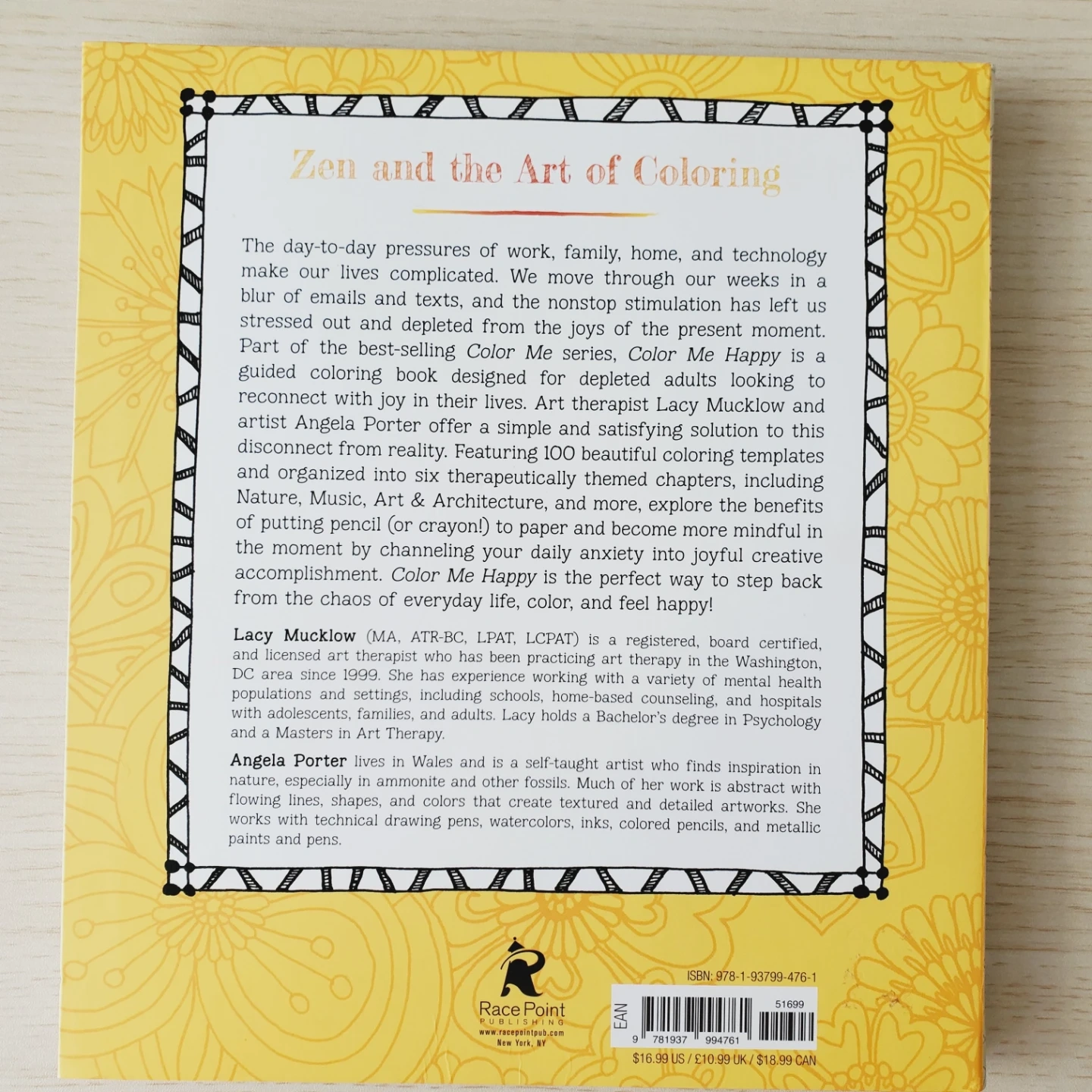 This coloring book features 100 coloring templates designed to bring joy and reduce daily anxiety. It includes chapters on Nature, Music, Art & Architecture, and Whimsical Imagery. Coloring templates are created by Lacy Mucklow and illustrated by Angela Porter. It's a great way to step back from everyday life and find some calm!