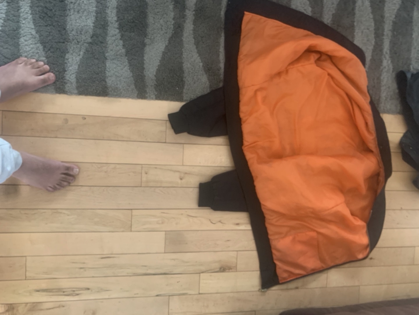 Men's black bomber jacket. Features an embroidered back design with the number 81 and the words "Support 81 Mary MMD". Gold zippers. Orange lining. Good condition.