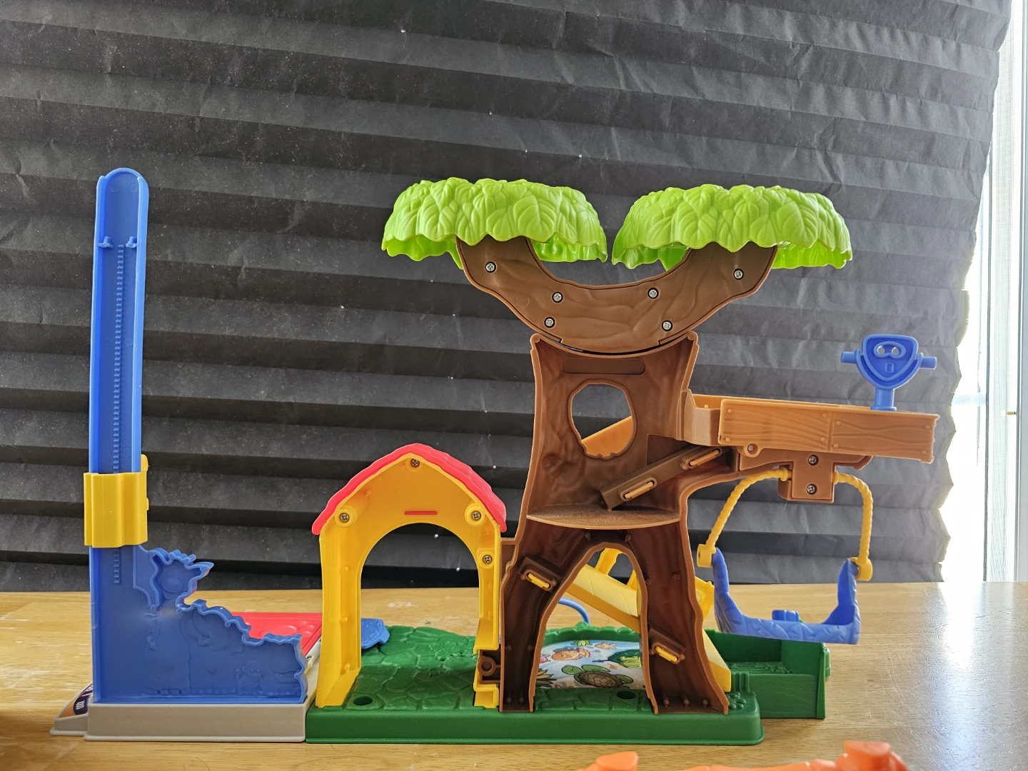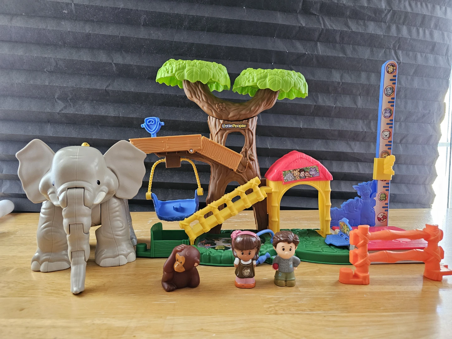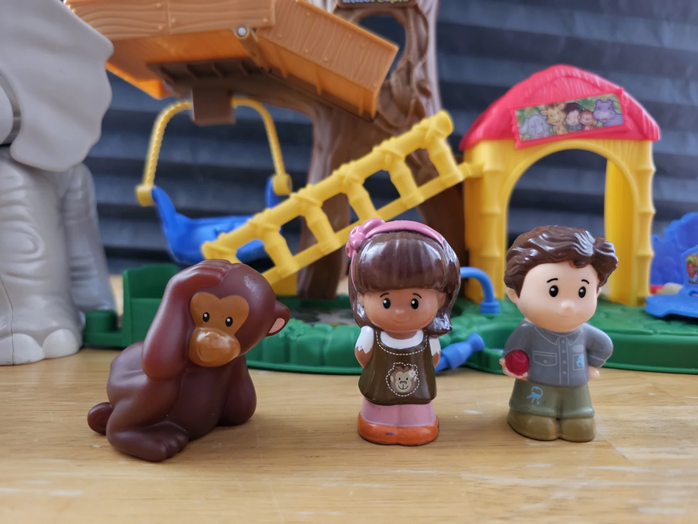 This Little People playset features an elephant, monkey, and two figures, along with a treehouse and interactive elements. It's designed for imaginative play and encourages interaction with animal and people characters. Great for developing fine motor skills and storytelling abilities!