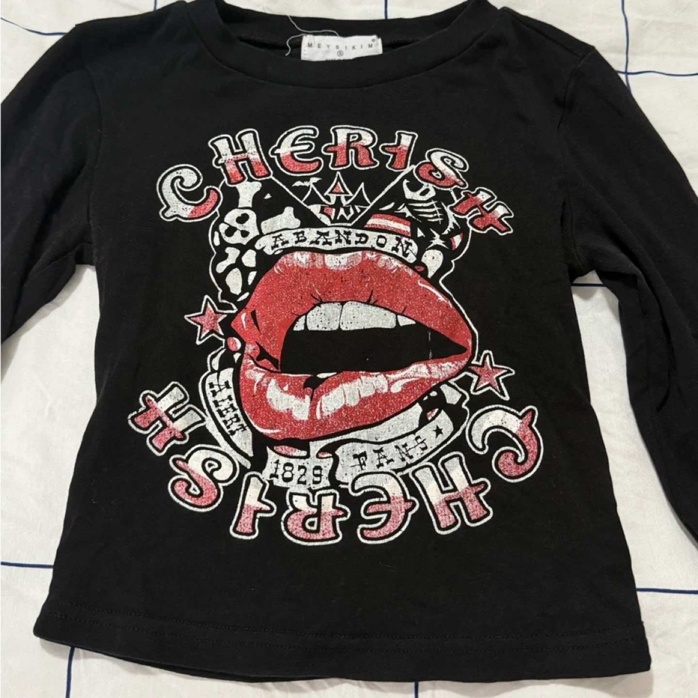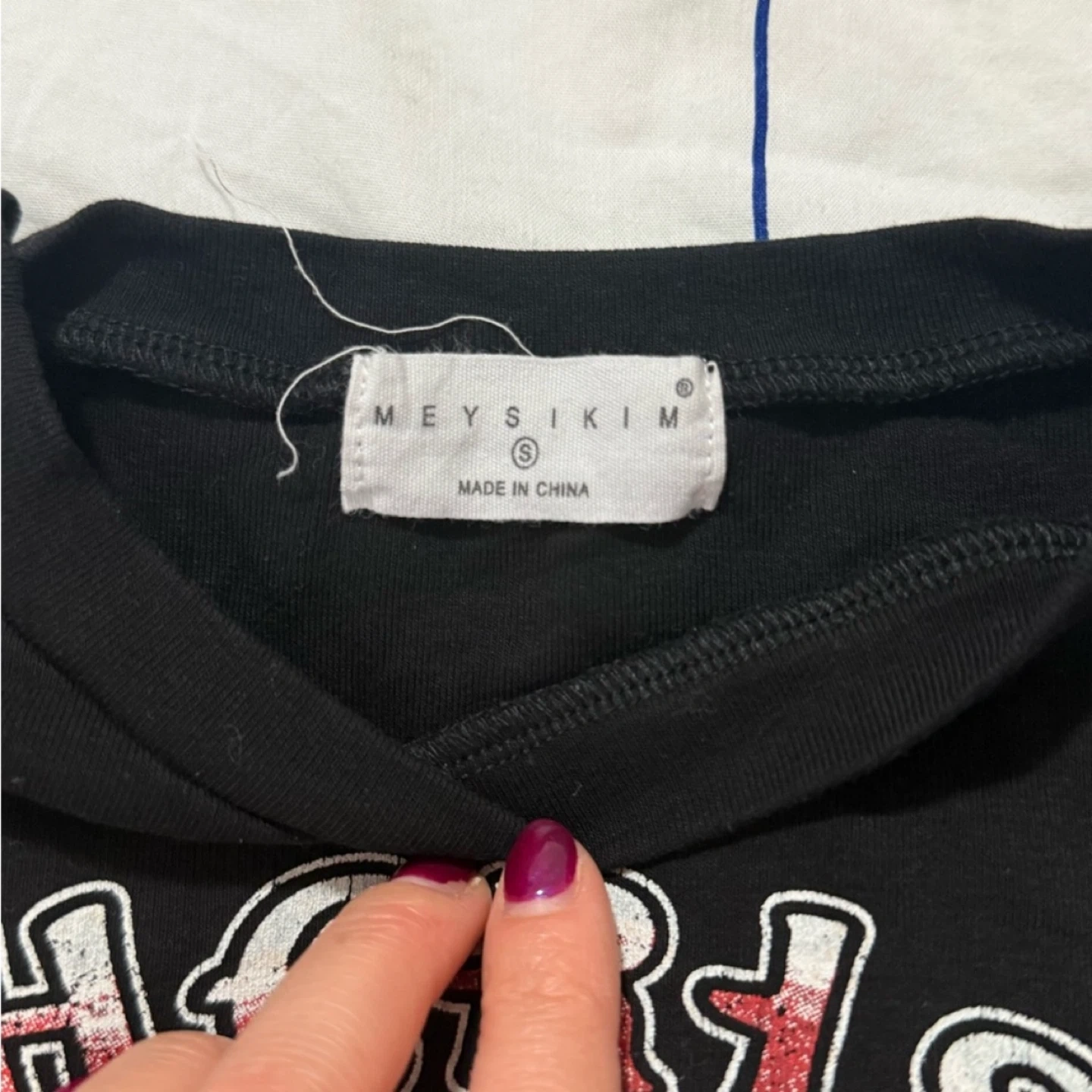 This is a black long sleeve t-shirt from MEYSIKIM. It's made of 95% cotton and 5% spandex. Amazing condition and it’s super comfy and stilysh.