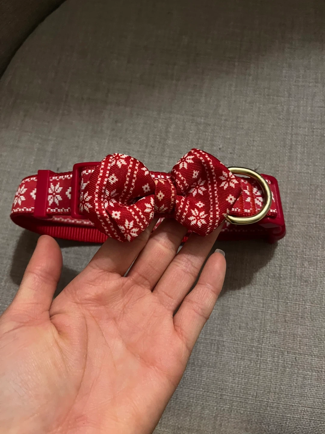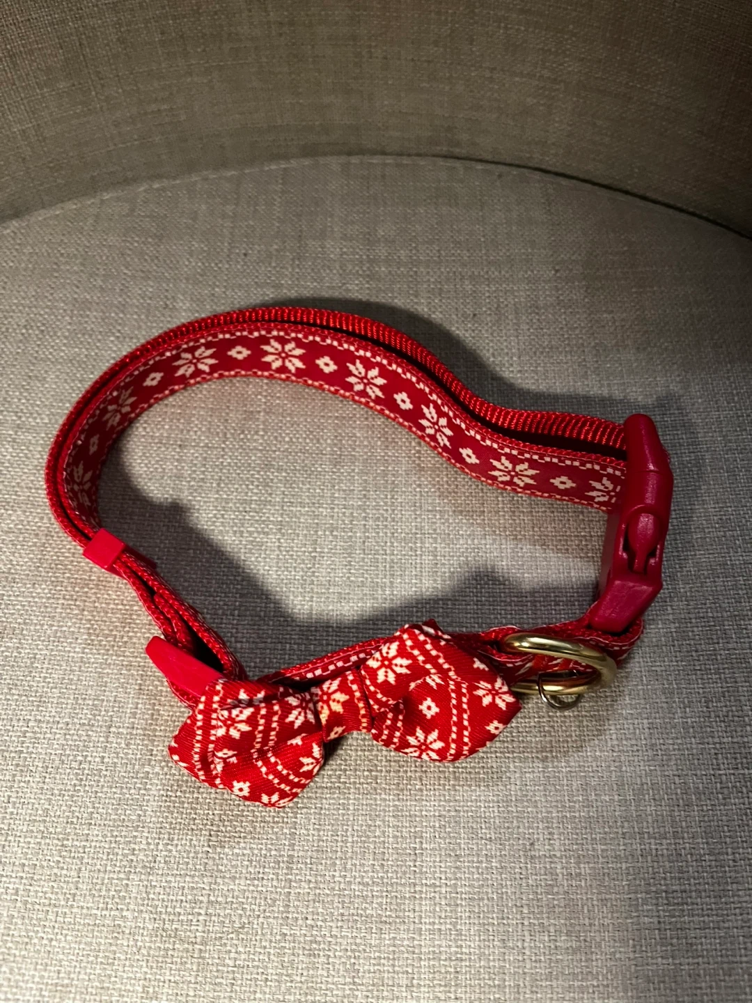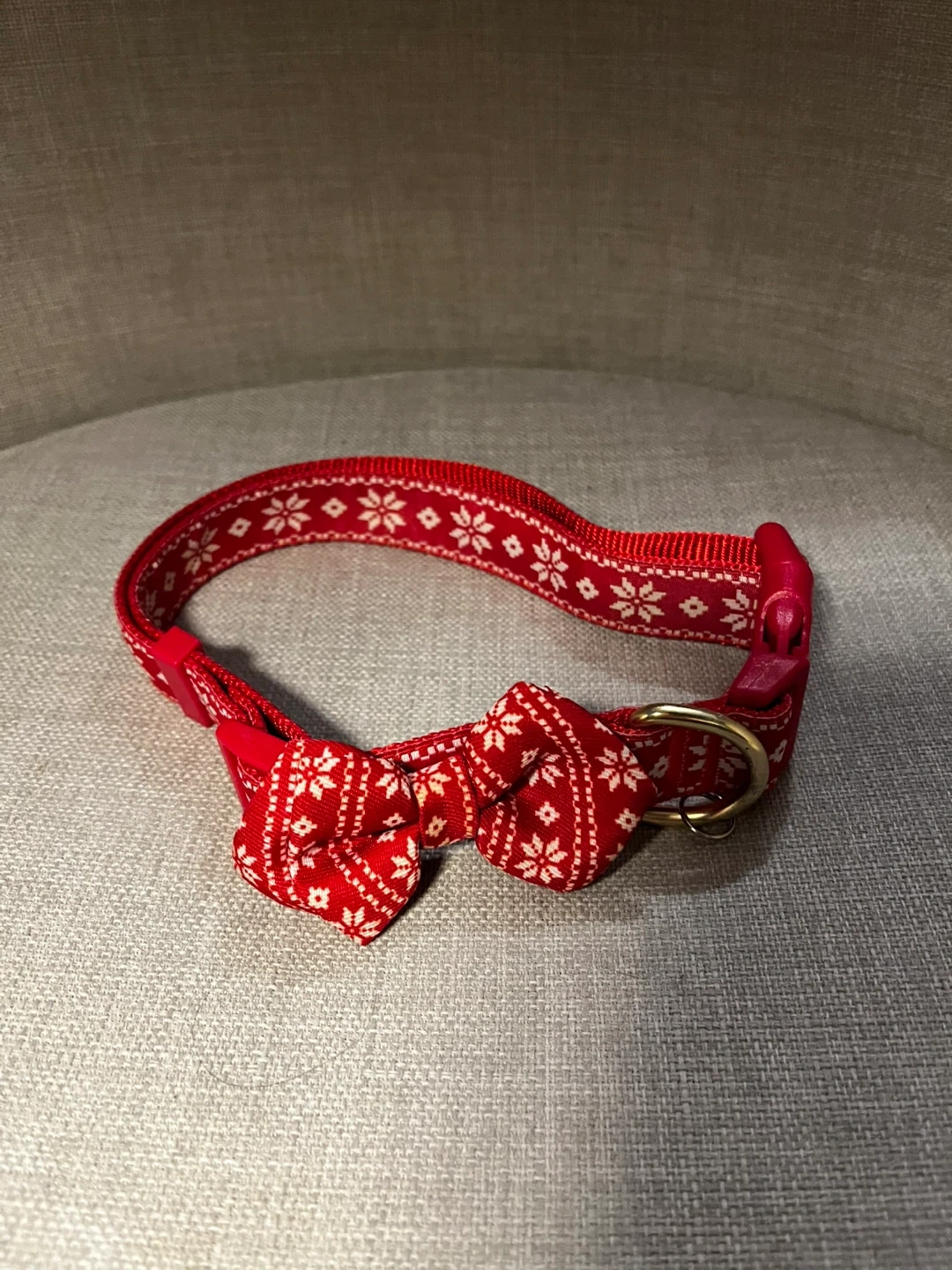 🖤Cute red dog collar featuring a festive snowflake pattern. It includes a detachable bowtie for extra flair.