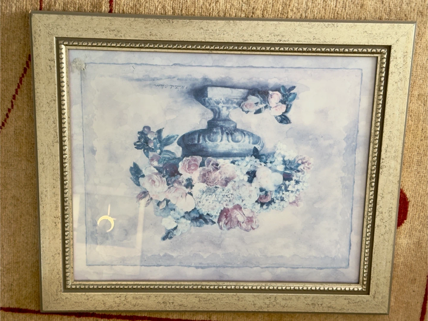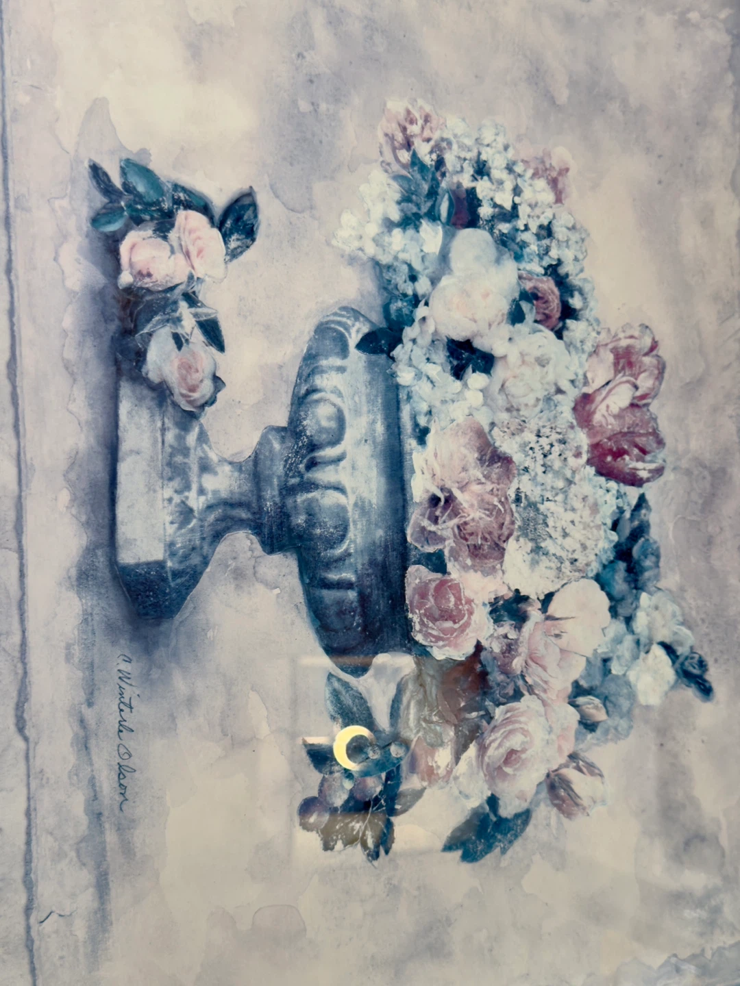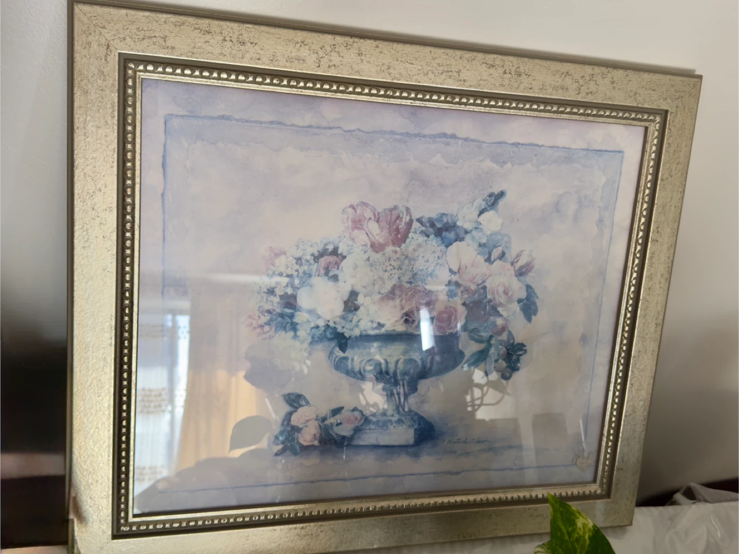 Beautiful framed print featuring a floral arrangement in an urn. The artwork is signed by "A. Winterle Olson". Adds a touch of elegance to any room.