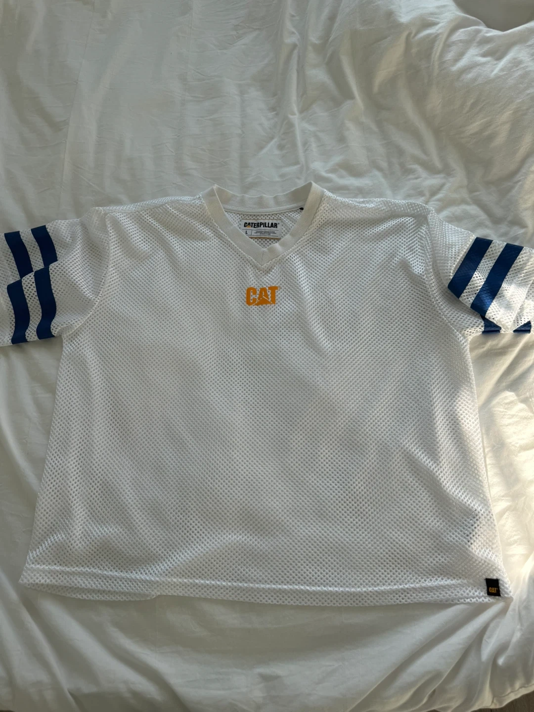 Buy & SellCaterpillar CAT Mesh Jersey Size LCaterpillar CAT Mesh Jersey Size L$25White Caterpillar mesh jersey with blue striped sleeves. It's size large. A CAT logo is on the front. Brand new and not worn.SizeLargeBrandCaterpillarWHERE TO MEETHollyroodView MapSELLERverifiedKrisHolyrood781 review0 chats·0 favorites·1 viewsSEND CHAT TO SELLERHi Kris! I’m interested in your listing.Hi Kris! I’m interested in your listing.Get the Karrot app to chatSign In to chat