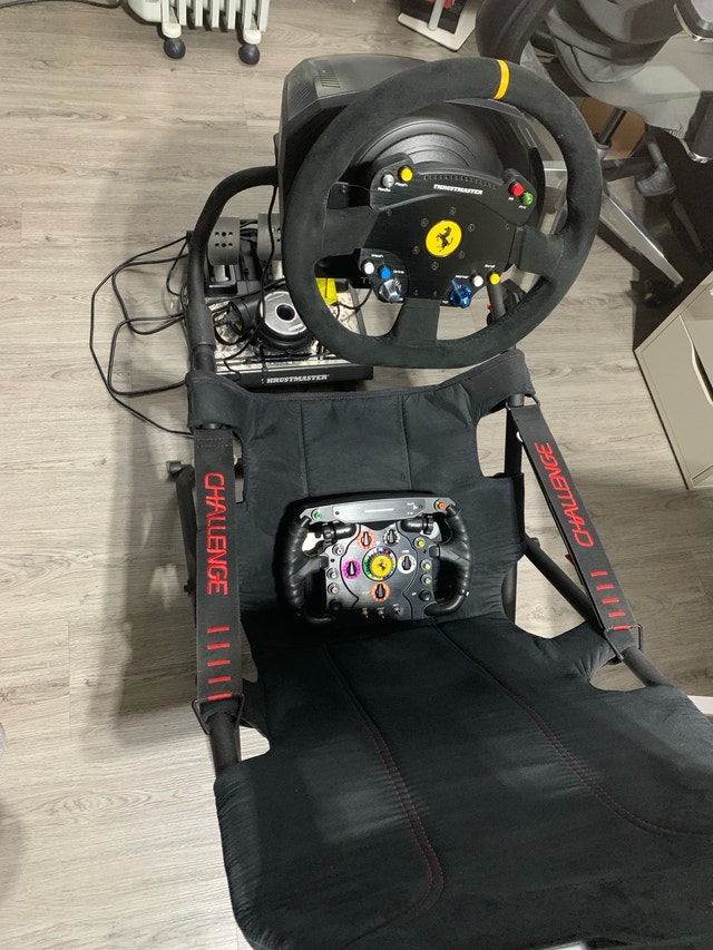 Thrustmaster TS-PC Racer wheel with Ferrari Open Wheel, Ferrari F1 wheel, and T3PM 3-pedals. Perfect condition.