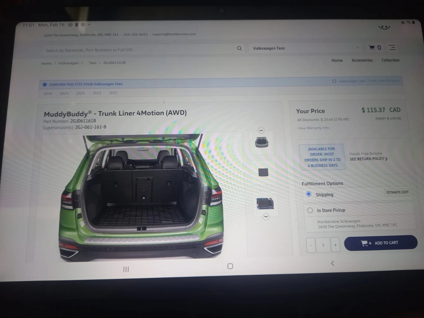 Buy & SellMuddy Buddy Cargo Liner for VW Taos 4WDMuddy Buddy Cargo Liner for VW Taos 4WD$80Practically brand new. CAD $80ConditionLike newWHERE TO MEETLeacrest Road, East YorkView MapSELLERShastaLeaside Bennington231 review0 chats·0 favorites·11 viewsSEND CHAT TO SELLERHi Shasta! I’m interested in your listing.Hi Shasta! I’m interested in your listing.Get the Karrot app to chatSign In to chat