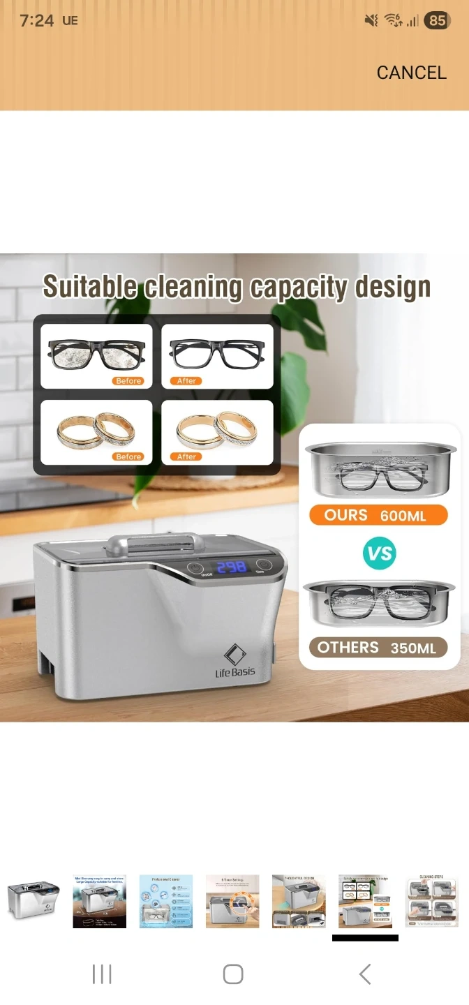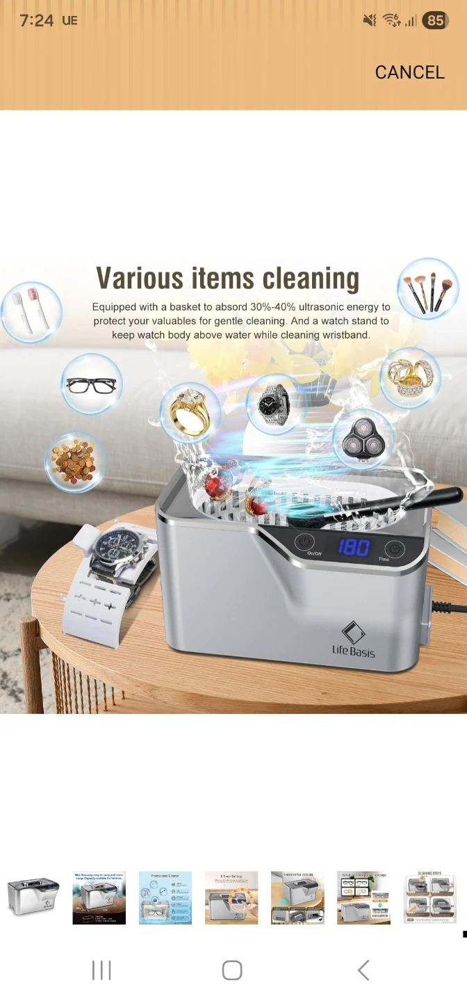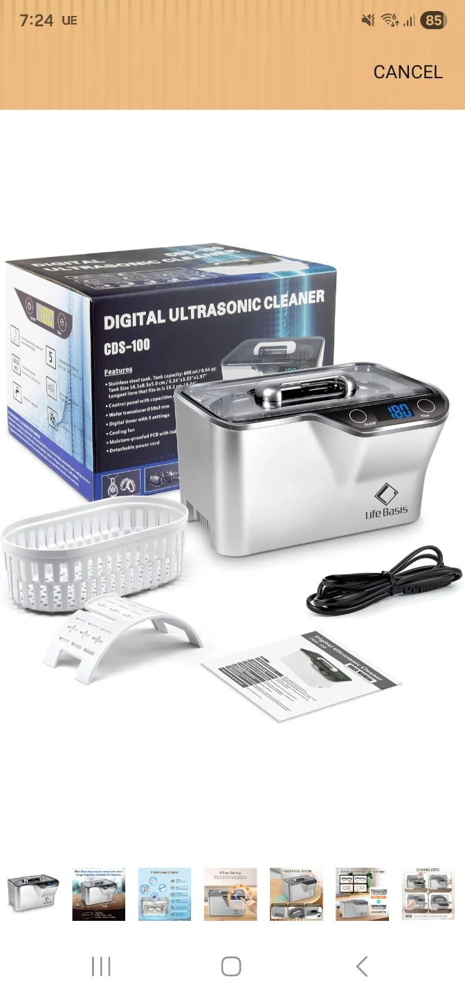 LifeBasis Ultrasonic Cleaner, Professional 45kHz Ultrasonic Jewelry Cleaner 20 Ounces (600ML) with Digital Timer, Watch Holder Ultrasonic Glasses Cleaner for Rings, Coins, Watches, Silver