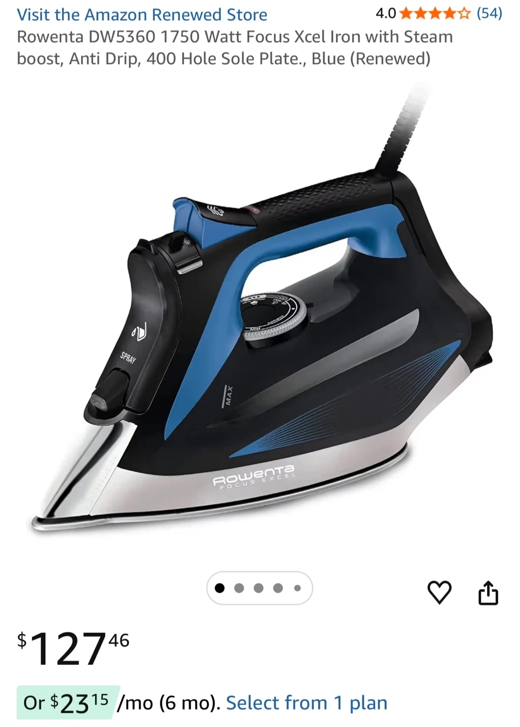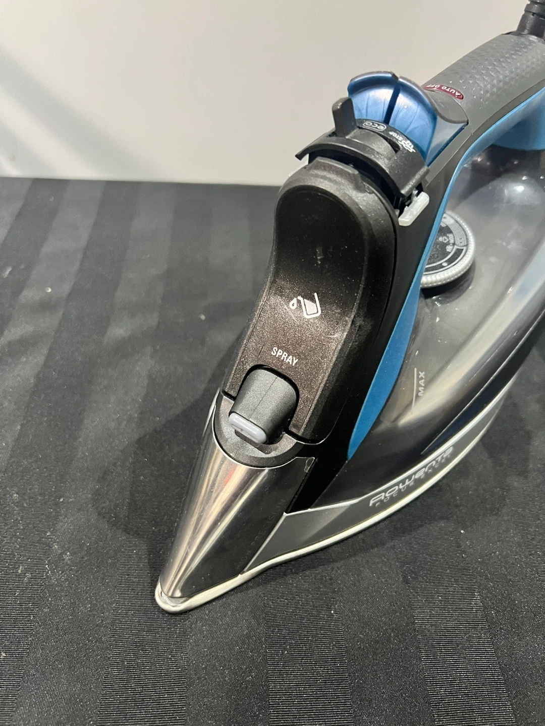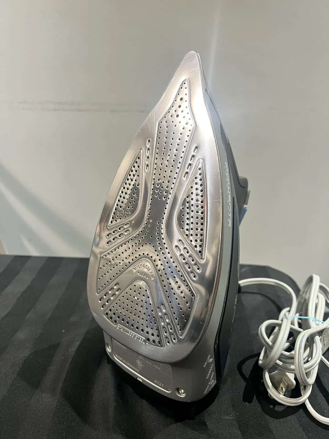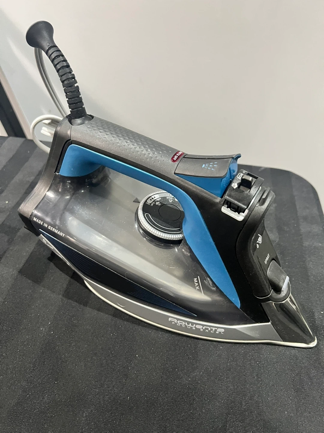 Selling because I am moving out. Barely used. This is a Rowenta Focus steam iron. It has a 400-hole sole plate for even heat distribution. The iron is blue and silver and made in Germany.