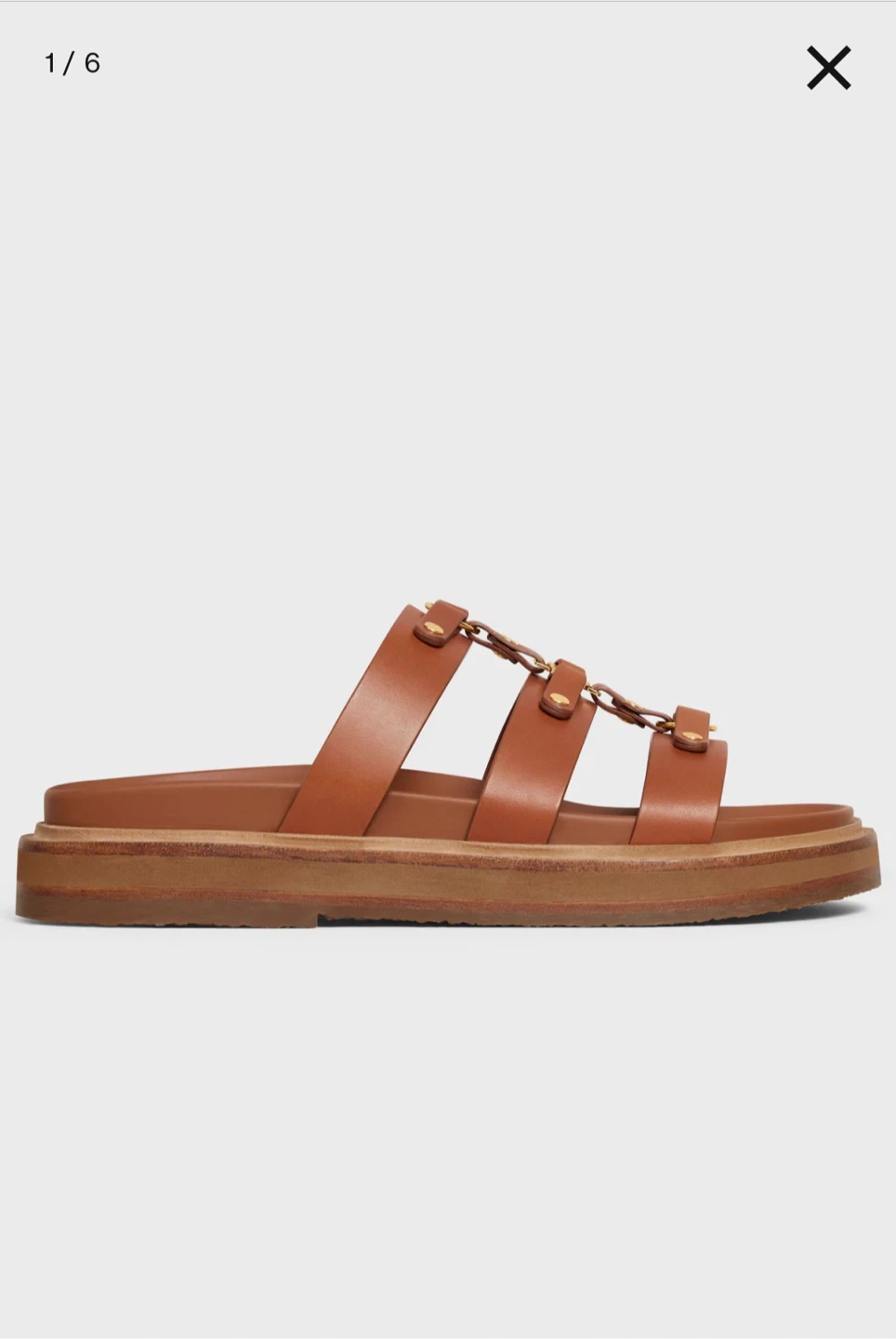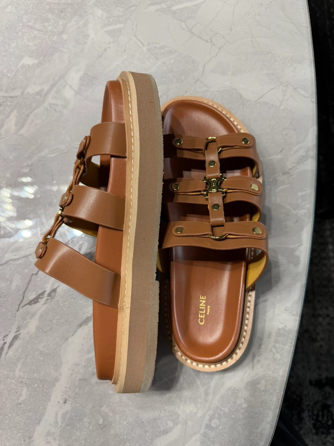 CELINE Brown Leather Triple Strap Sandals - Size 38