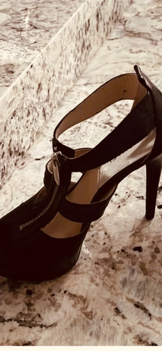Stylish Michael Kors heels in black. These open-toe heels feature a front zipper and ankle strap. Crafted from leather with a comfortable insole. Perfect for adding a chic touch to any outfit! They are very comfortable in great condition.