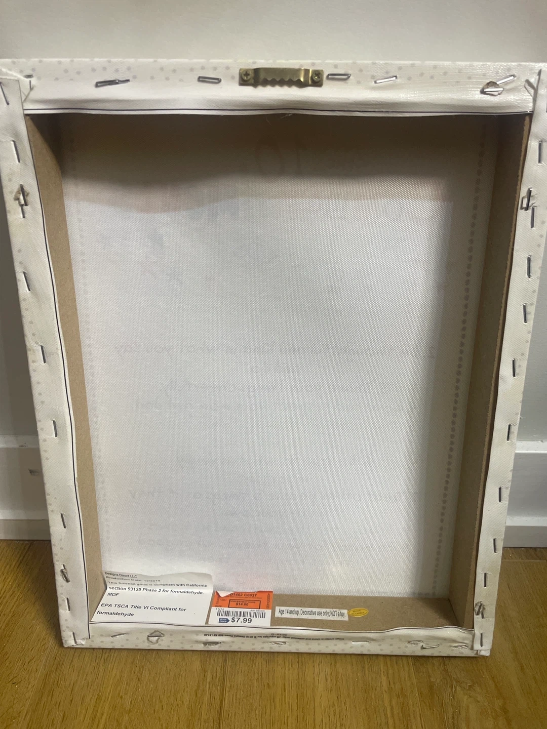 This canvas art features the 10 Commandments for kids in a colourful design. It's made from MDF and is compliant with California section 9312D Phase 2 for formaldehyde. Decorative use only, not a toy.