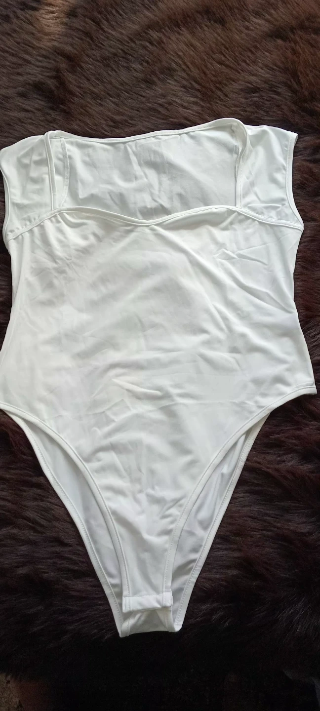 A white SHEIN 1XL bodysuit. Made with a blend of polyester and elastane. Great for layering under outfits. Never worn. Brand new. Took out of package to take pictures. Will come in package.