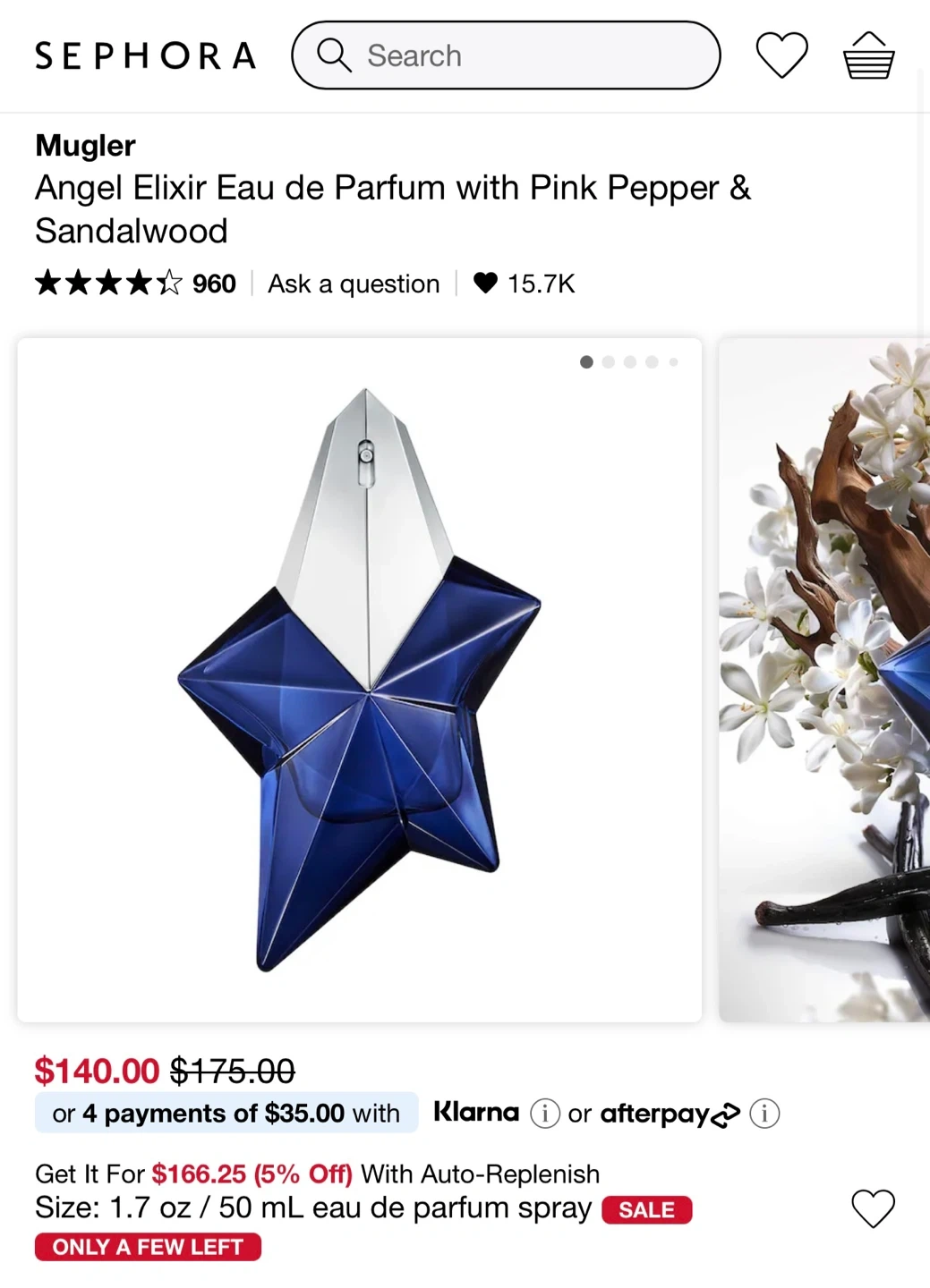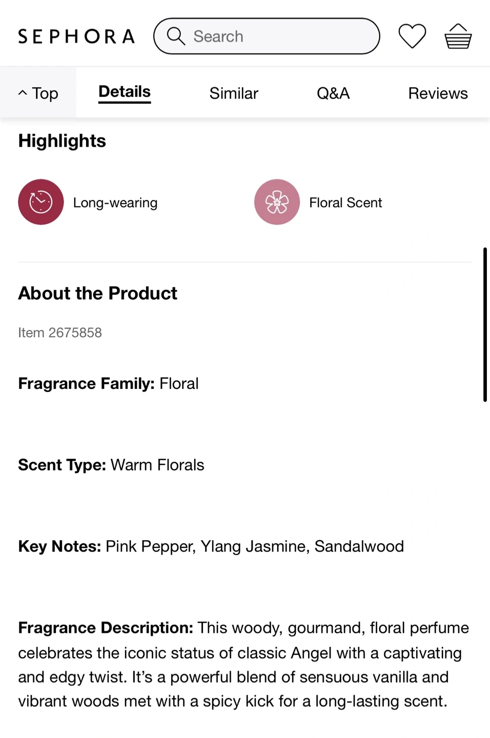 Mugler Angel Elixir Eau de Parfum is a long-wearing floral scent with notes of pink pepper, ylang jasmine, and sandalwood. This woody, gourmand, floral perfume has a captivating and edgy twist. It's a powerful blend of sensuous vanilla and vibrant woods met with a spicy kick for a long-lasting scent.