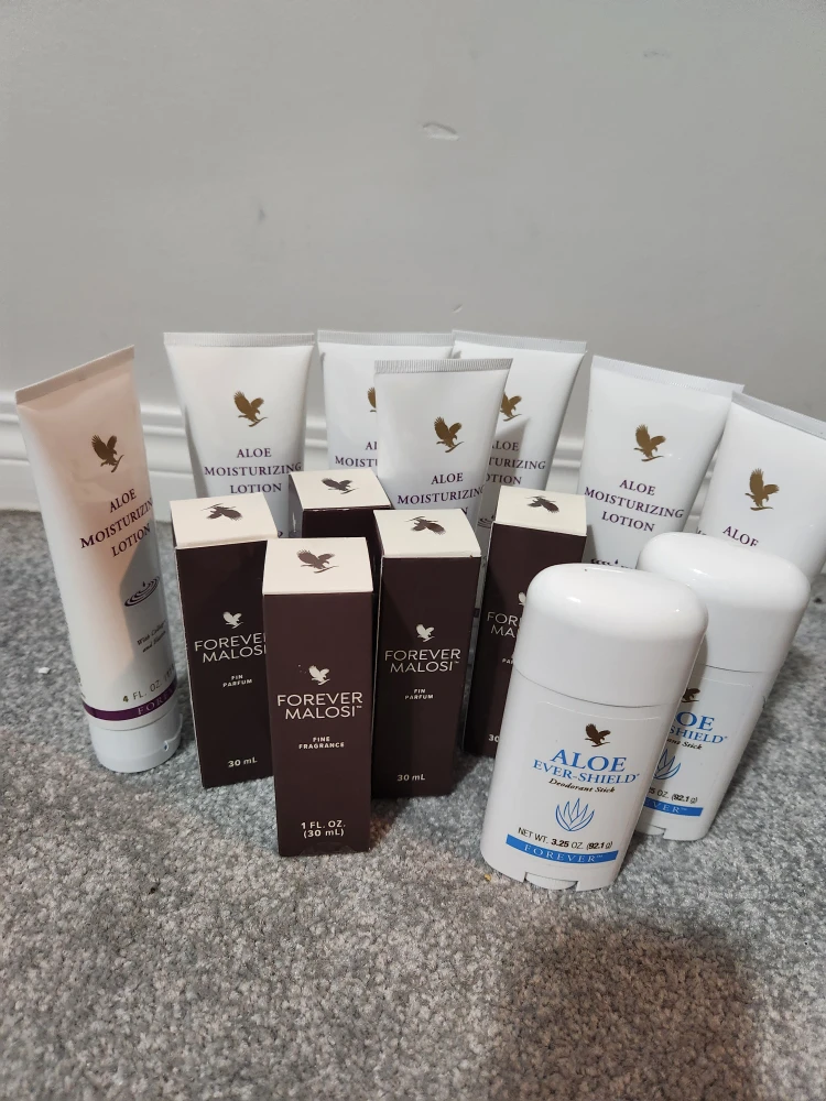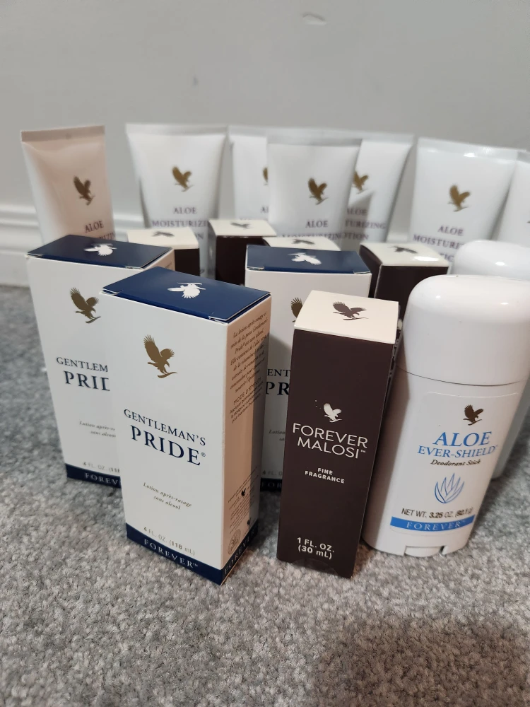 Selling a variety of Forever Living lotions and aftershaves! Includes Gentleman's Pride Aftershave Lotion, Aloe Moisturizing Lotion, Aloe Cooling Lotion, Aloe Vera Gelly, Aloe Ever-Shield Deodorant Stick, Forever Malosi Fine Fragrance, and Aloe Blossom Herbal Tea. All are 4 fl. oz (118 ml).