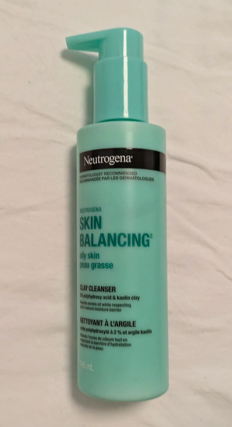 This Neutrogena Skin Balancing Clay Cleanser is formulated for oily skin. It contains 2% polyhydroxy acid & kaolin clay to absorb excess oil. It comes in a 186 mL bottle.