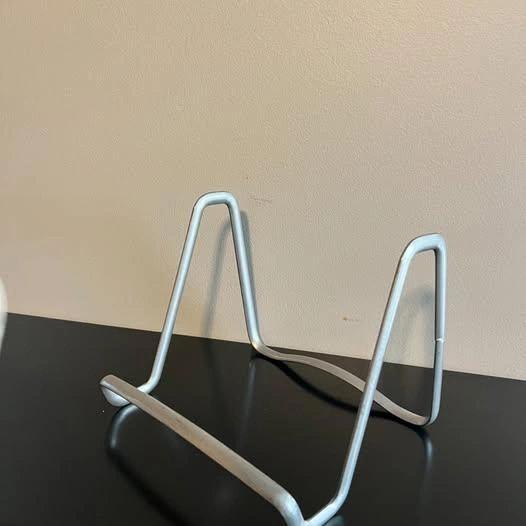Sturdy metal stand that can be used for either standing up a cookbook or a document you need to reference while on the computer.