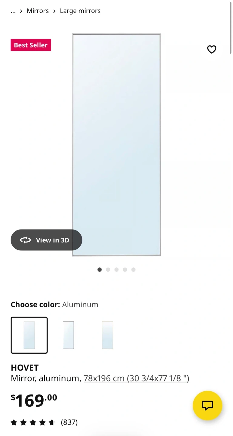 IKEA HOVET Mirror, Aluminum, 78x196 cm