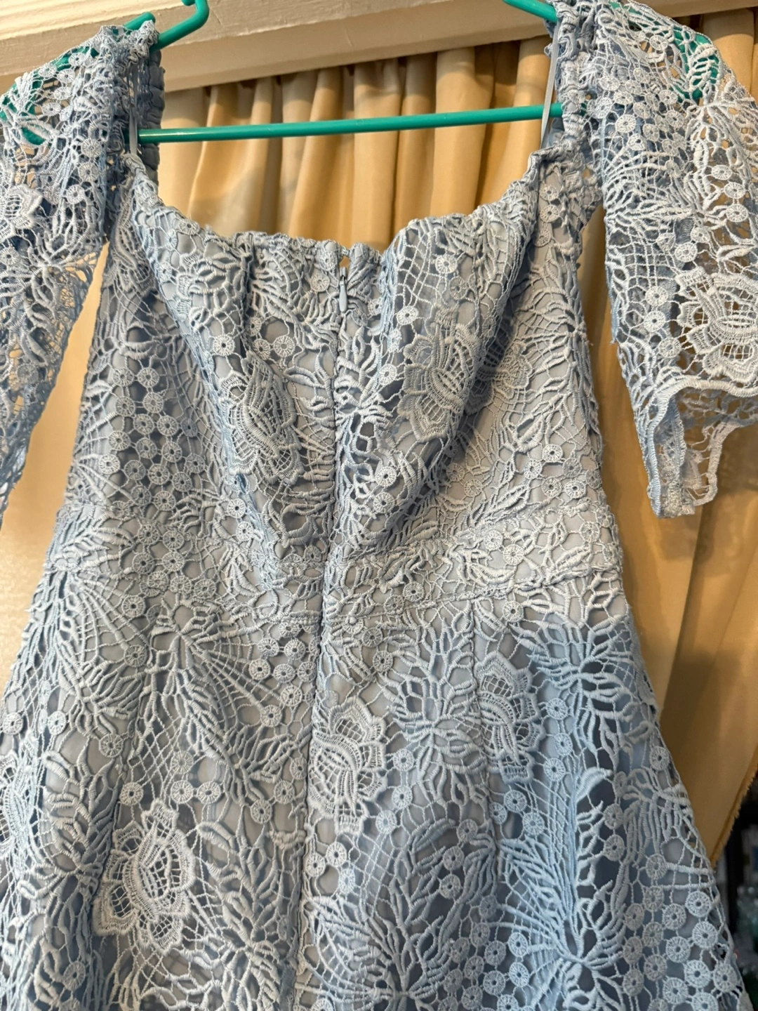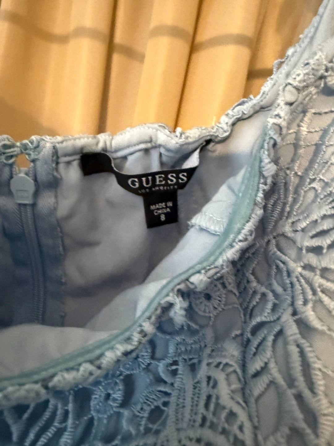 Selling a beautiful light blue lace romper from Guess. It's in great condition and features a delicate lace pattern throughout. The size is 8 fits small and was used twice , its shorts style .
