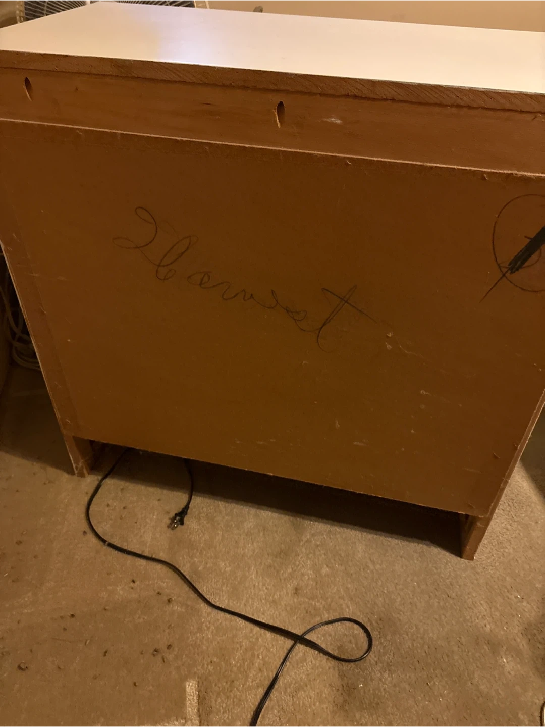 White dresser featuring 3 drawers for storage. It has a classic design with gold-toned drawer pulls. This chest of drawers offers ample space for clothes and linens.Reasonable offers considered.Please if you are truly interested msg me as I am very busy emptying a house out and don’t have time for no shows. This needs to pickup by the 21st .Thanks for understanding.