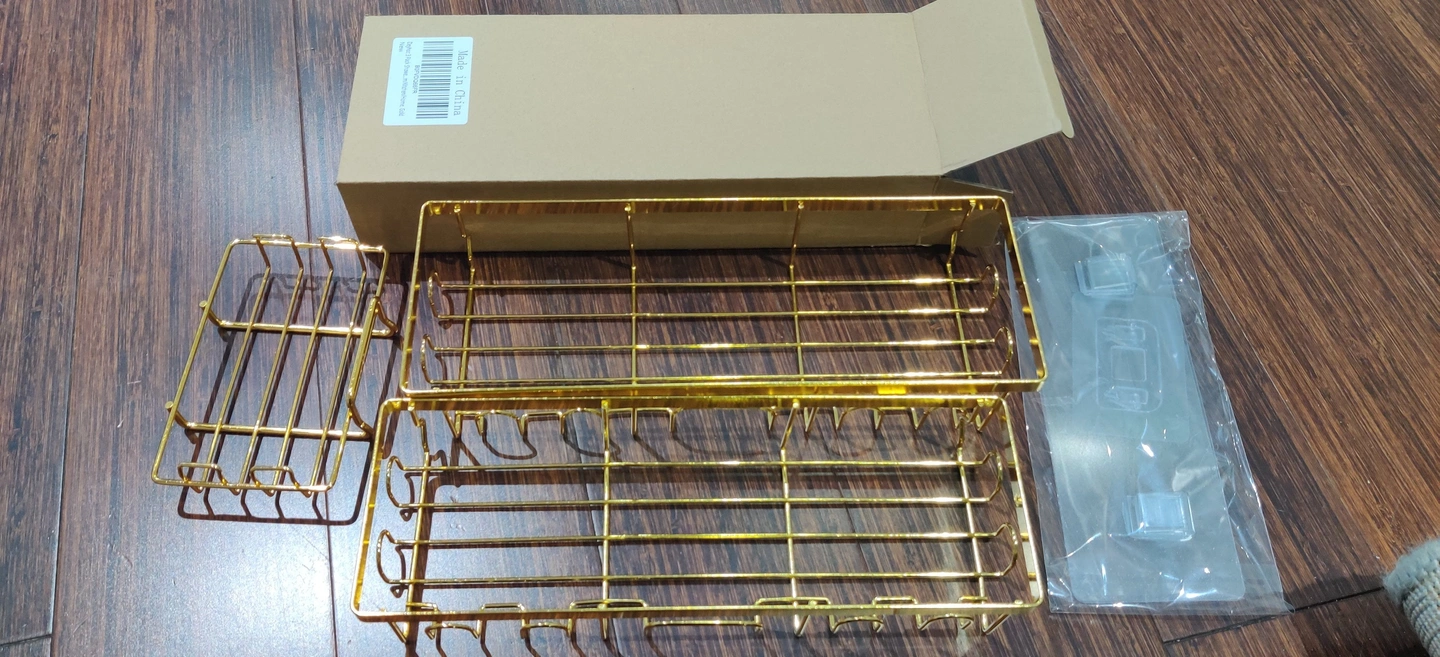 Selling a gold-coloured 3-Pack Adhesive Shower Caddy! It's in great condition and comes with its original box. Perfect for adding a touch of elegance to your bathroom decor.