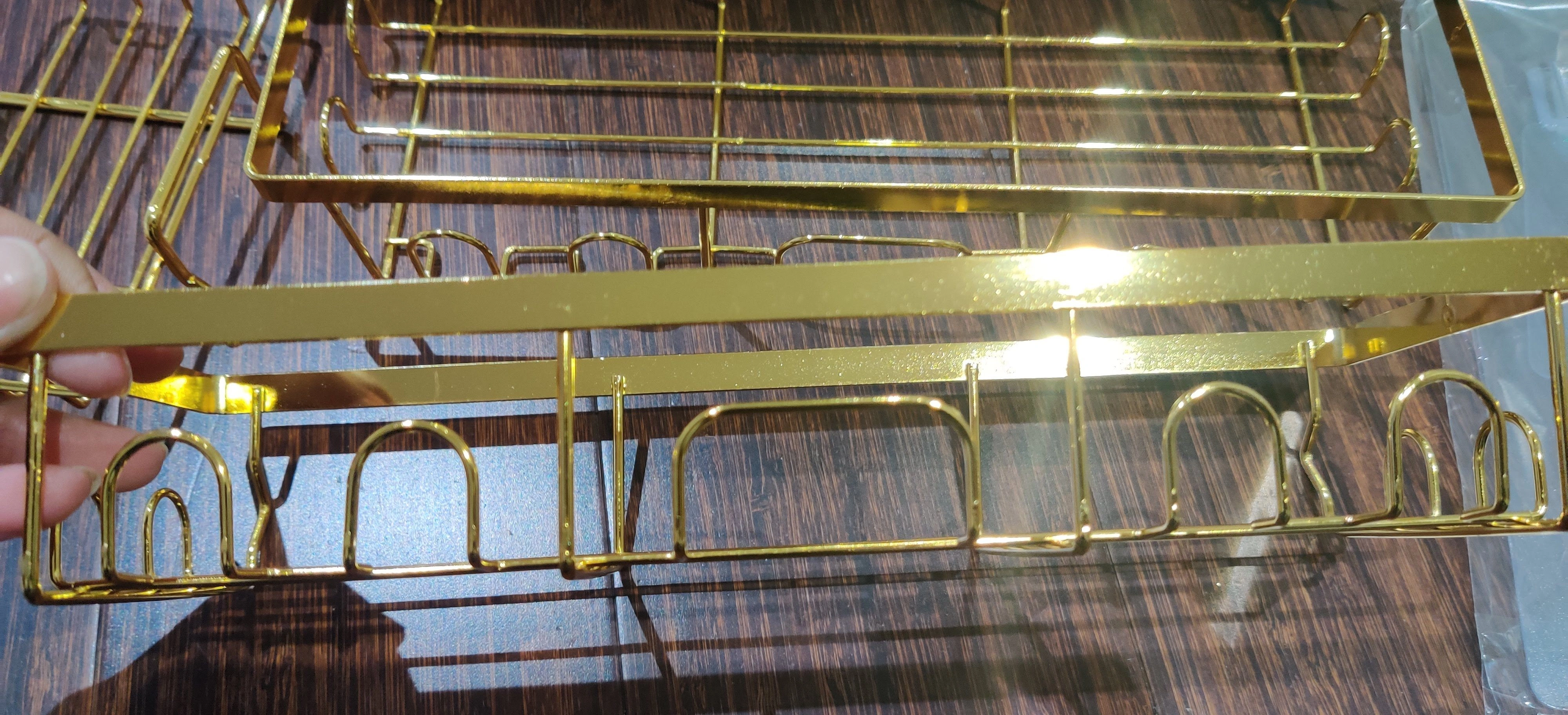 Selling a gold-coloured 3-Pack Adhesive Shower Caddy! It's in great condition and comes with its original box. Perfect for adding a touch of elegance to your bathroom decor.