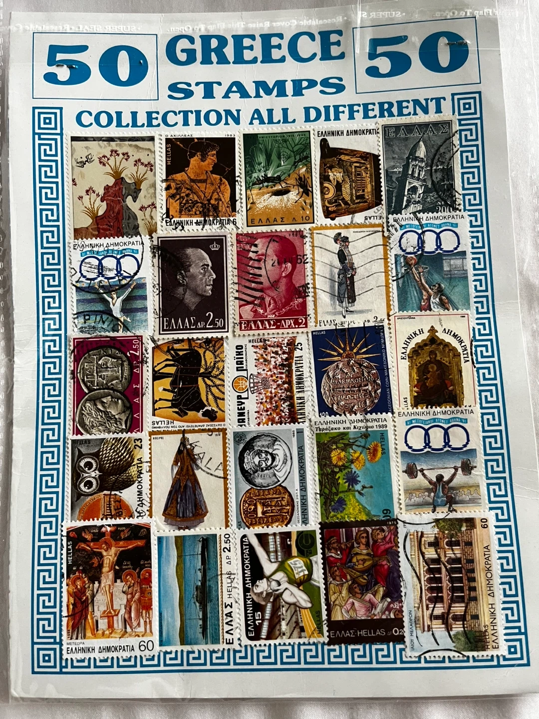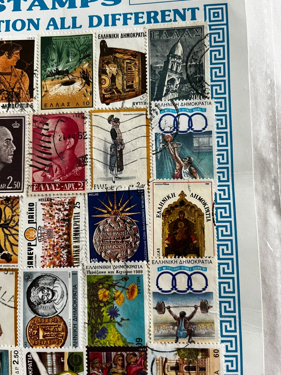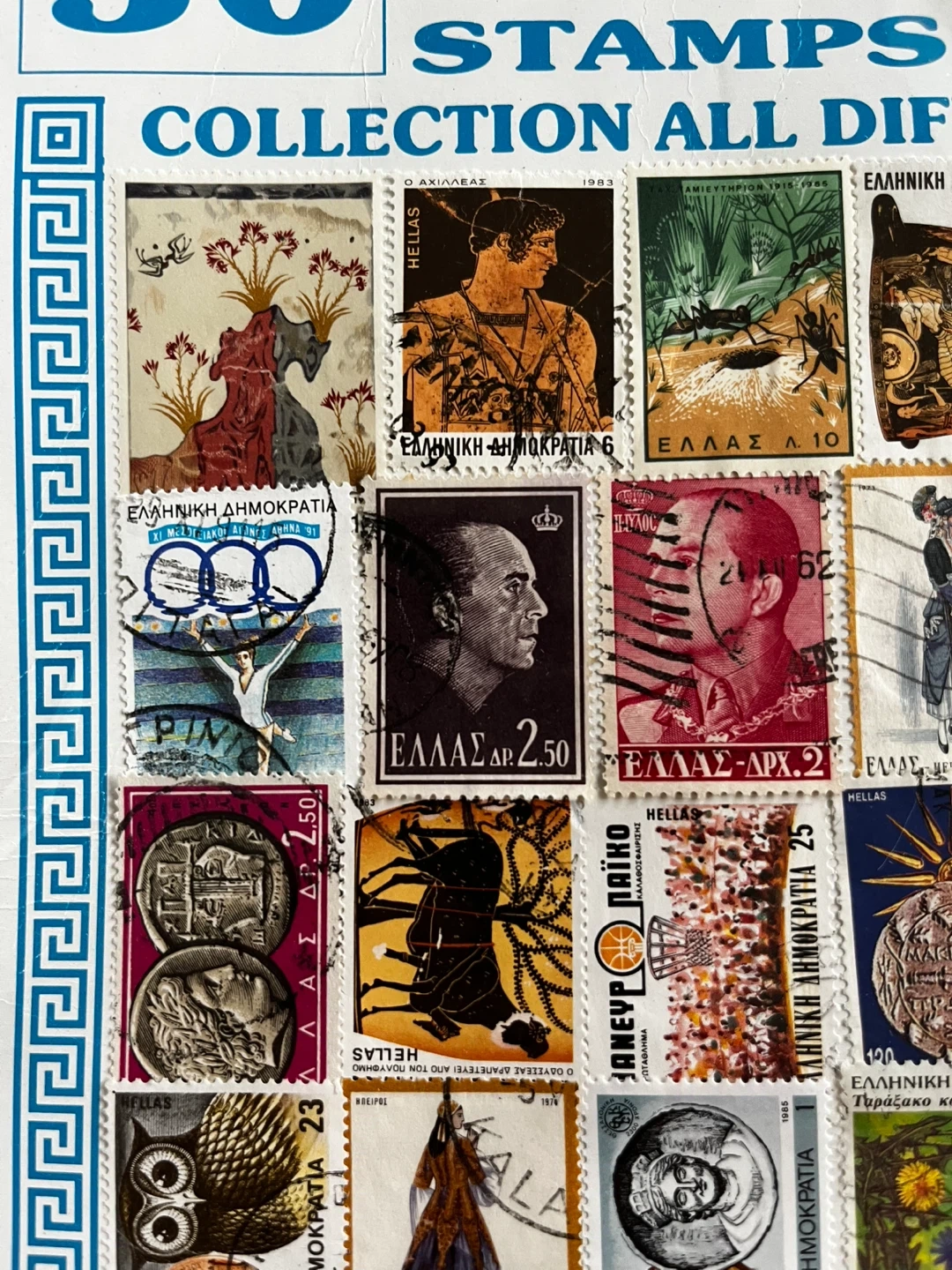 This is a collection of 25 stamps from Greece, all featuring different designs. The stamps depict various historical figures, cultural scenes, and national symbols. They are in good condition and ready for a collector.