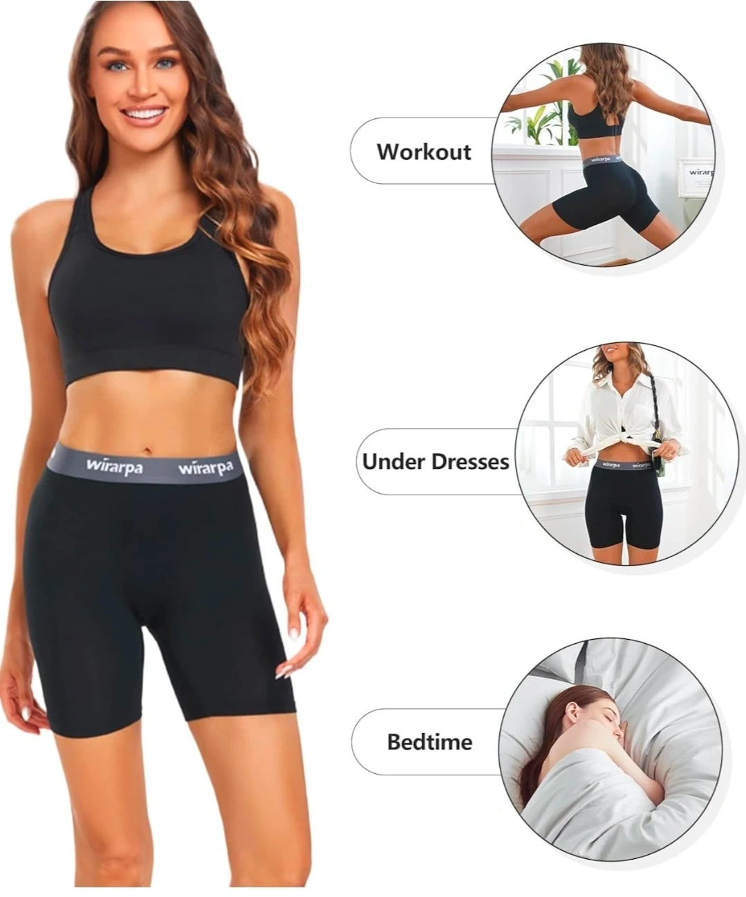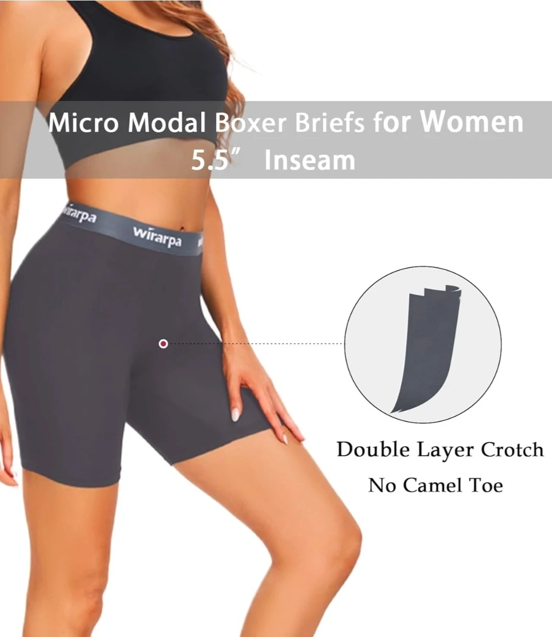 These wirarpa women's boxer shorts are made from micro modal fabric. They feature a 5.5" inseam and a double-layer crotch for comfort. The stay-put waistband ensures they remain in place throughout the day. This pack includes four pairs in black and grey.