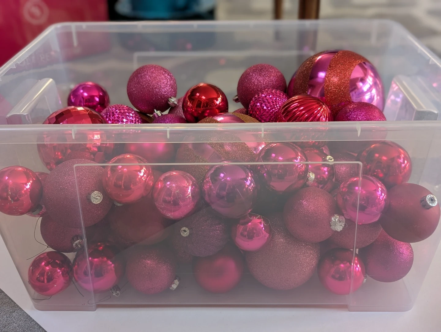 Beautiful collection of various sized PINK & RED ornaments used for decorating for both Valentine's Day & Christmas. Other suggested events are bridal showers, grad, or just a "Pink Party"! π©·