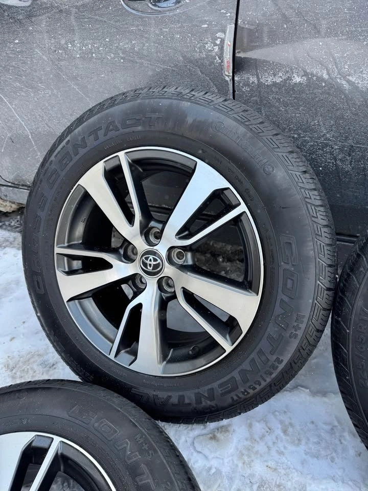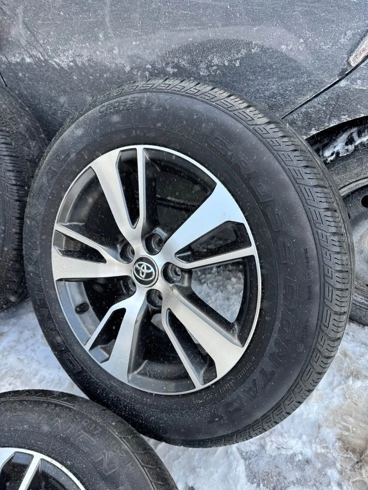 These tires fit 2006-2025 Toyota RAV4, 2011-2025 Toyota Sienna, 2007-2013 Highlander, or 2009-2016 Toyota Venza. The rims were used OEM on a 2018 Rav4. The tires have about 2-3 seasons of use left. All hold air, with no bends, cracks, or plugs. They are balanced and ready to mount. Center Bore: 60.1 mm. Bolt Pattern: 5x114.3 (5x4.5).