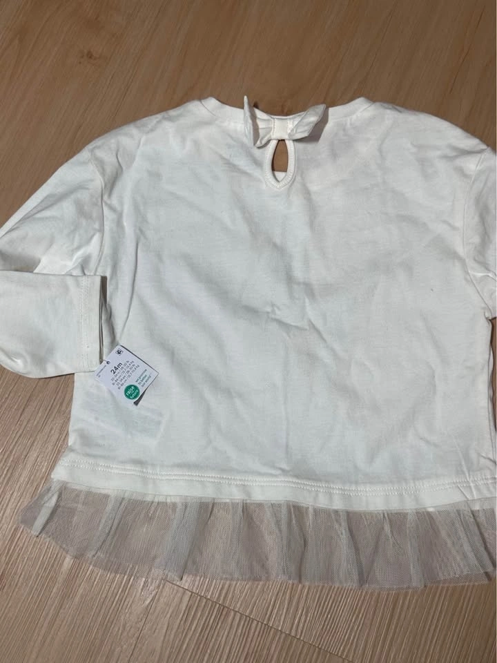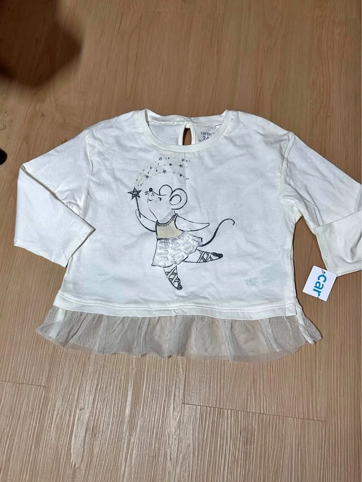 Sweet Carter's long sleeve top, size 24 months. Features a cute ballerina mouse graphic with glitter, a tulle ruffle on the bottom, and a little bow detail on the back. New with tags.