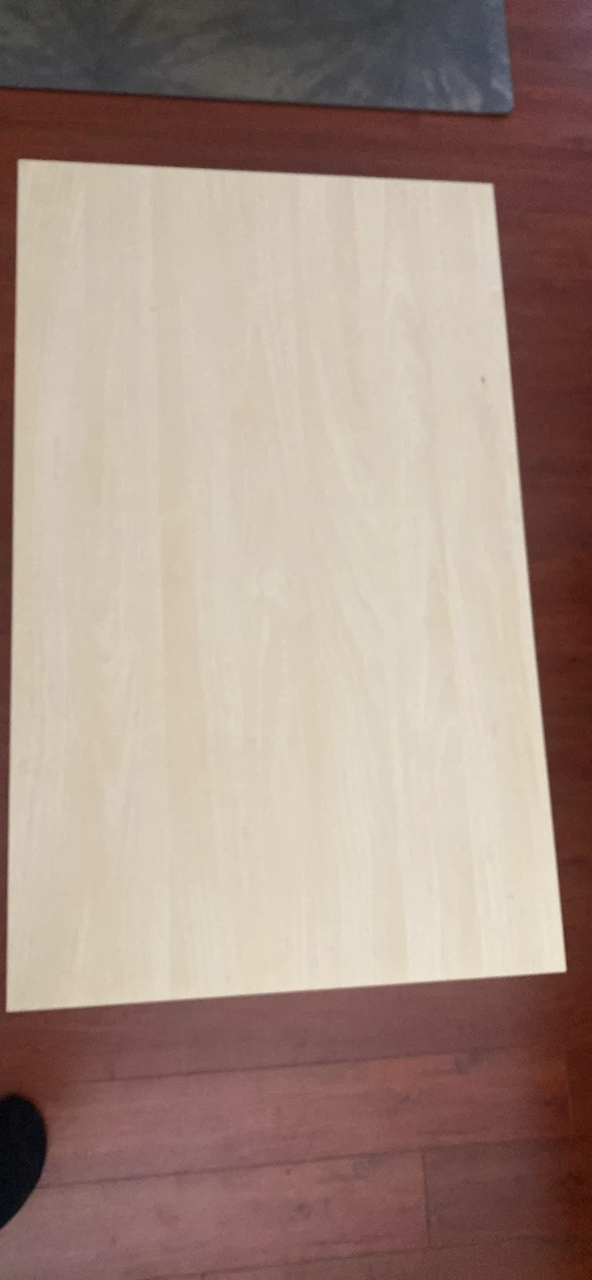 This is an IKEA LACK coffee table. It's white with a wood-like finish and has a lower shelf for storage. Perfect for your living room!