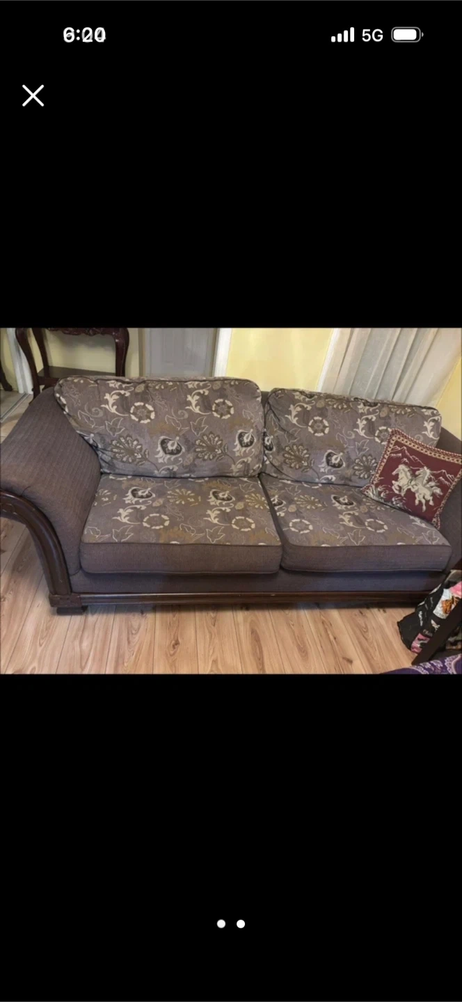 This is a sofa with a brown fabric featuring a floral print. It's a comfy addition to any living space!