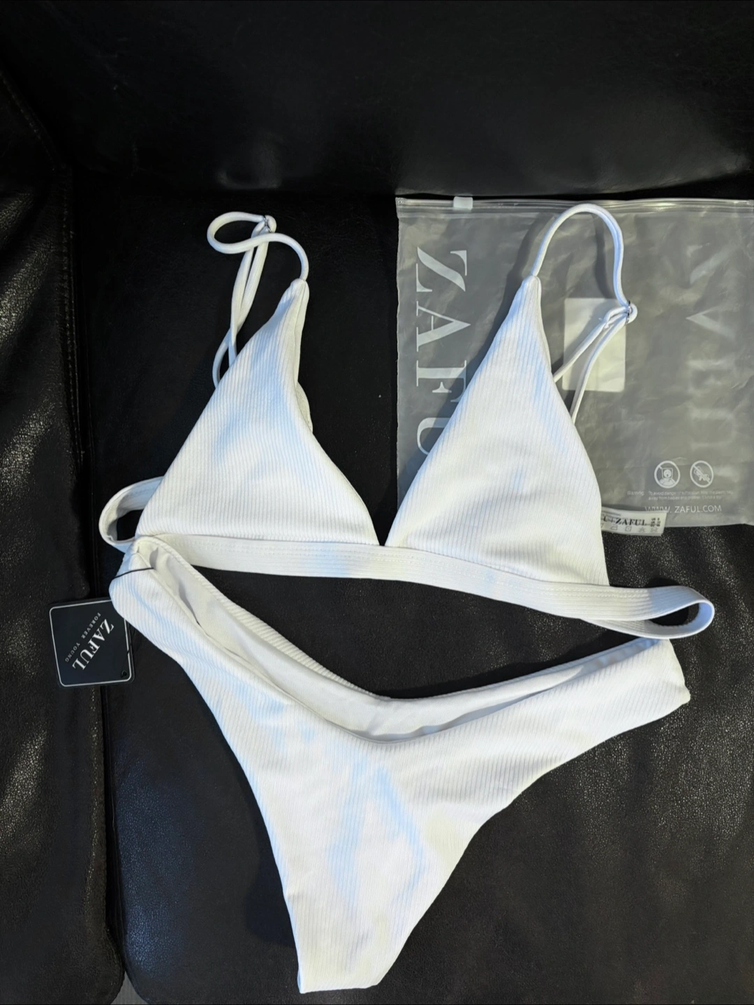 (NEW) Zaful Ribbed White Bikini Set