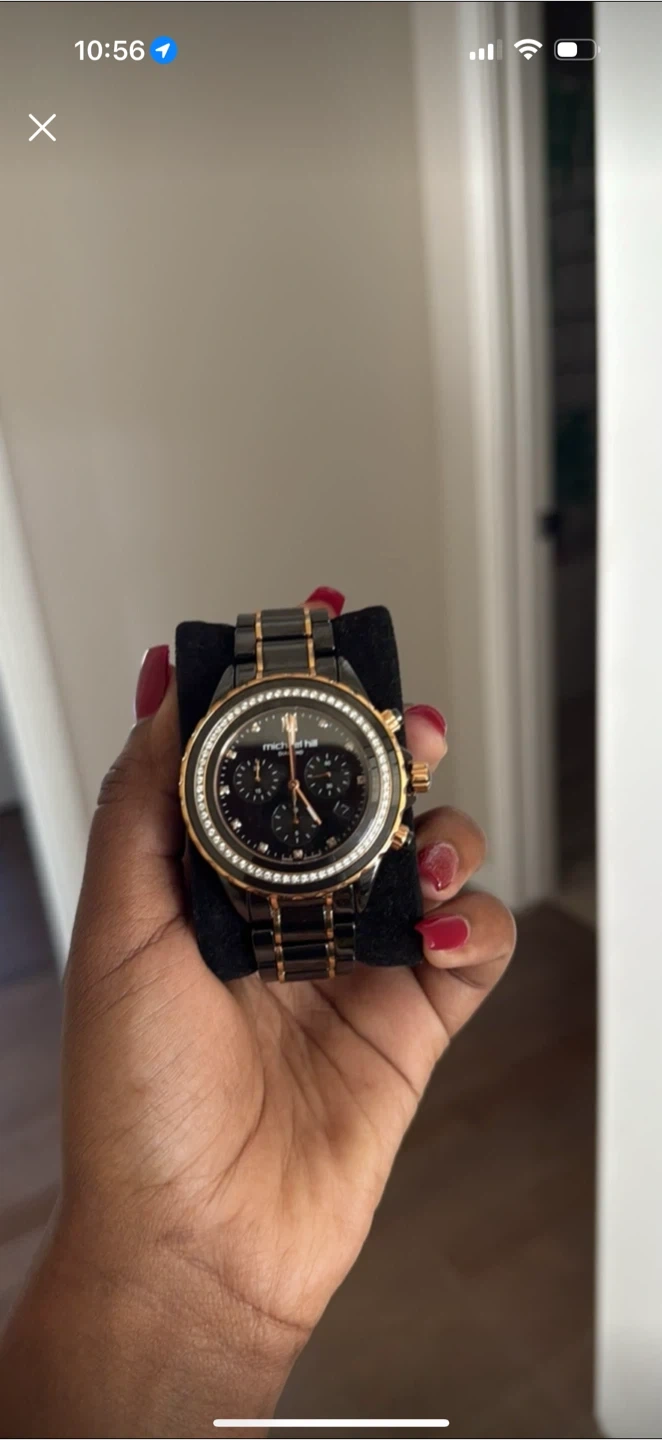 Selling a beautiful Michael Hill ladies chronograph watch. It features a black ceramic and rose tone stainless steel design, crystal glass, Swiss movement, and is 100m water resistant. The watch is set with 0.50ct of diamonds. It was originally purchased at Market Mall on 07 November 2020. Includes the original box and certificate of authenticity. Originally retailed for $2399.00