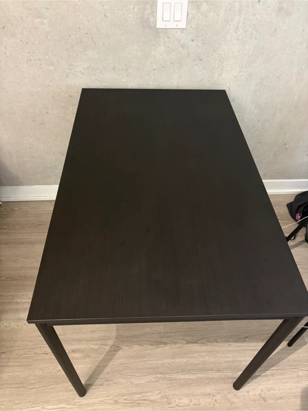 SANDSBERG table in black. Dimensions are 110x67 cm (43 1/4x26 3/8 "). It's a compact size, suitable for smaller dining areas or as a workspace