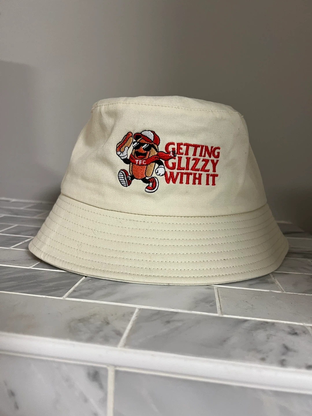Buy & SellTFC 'GETTING GLIZZY WITH IT' Bucket HatTFC 'GETTING GLIZZY WITH IT' Bucket Hat$20Cream bucket hat featuring a fun embroidered graphic of a hot dog character. It also has a TFC crest logo embroidered on the back.ConditionNewWHERE TO MEETEntrance to WalmartView MapSELLERverifiedVeeThornhill63958 reviews1 chats·1 favorites·11 viewsSEND CHAT TO SELLERHi Vee! I’m interested in your listing.Hi Vee! I’m interested in your listing.Get the Karrot app to chatSign In to chat