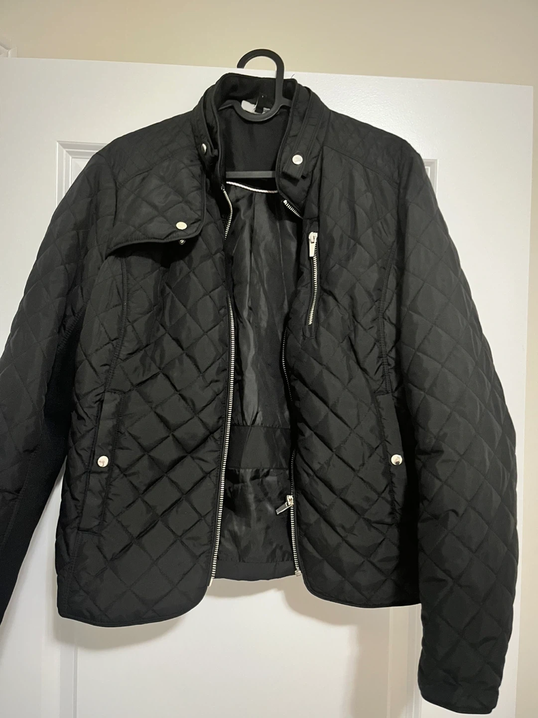 Selling a Vero Moda quilted jacket in black. It's a size L and in great condition. This stylish jacket is perfect for adding a touch of warmth and sophistication to any outfit. Feel free to message with any questions